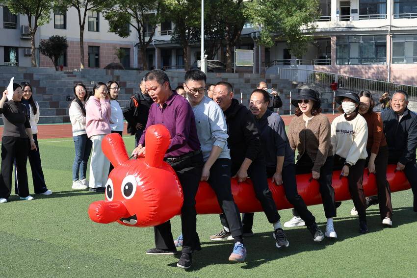 老师们一改平日严肃认真的形象,化身成一个个活泼勇猛的运动达人,肆意挥洒激情,尽情释放压力。大家相互鼓励,你拼我搏,密切配合,把比赛的气氛一次次推向高潮。
