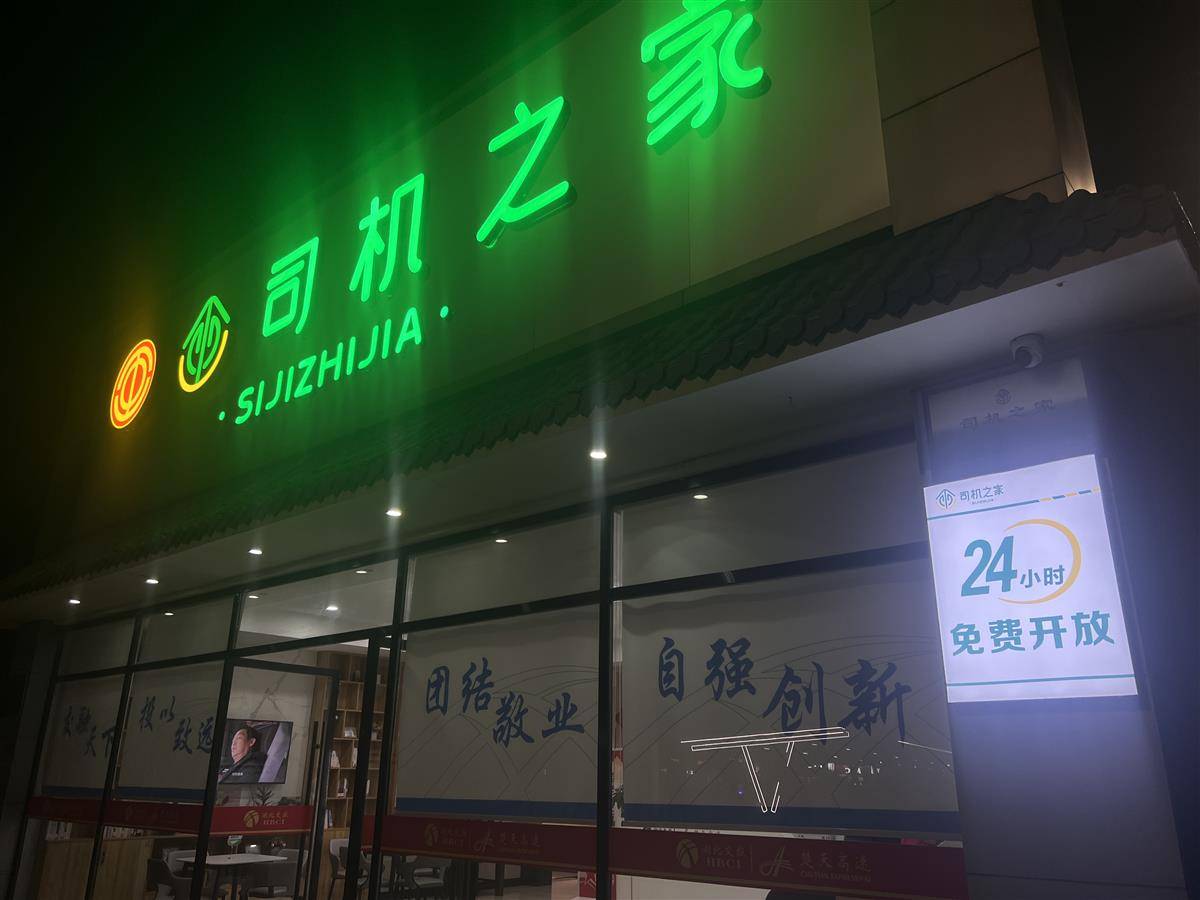 11月20日晚7时,沪渝高速潜江高速服务区北风呼啸,气温骤降至7摄氏度。一辆10多米长的大货车停靠,一名司机从驾驶室跳下,拎着行李,径直走向亮着灯的“司机之家”。