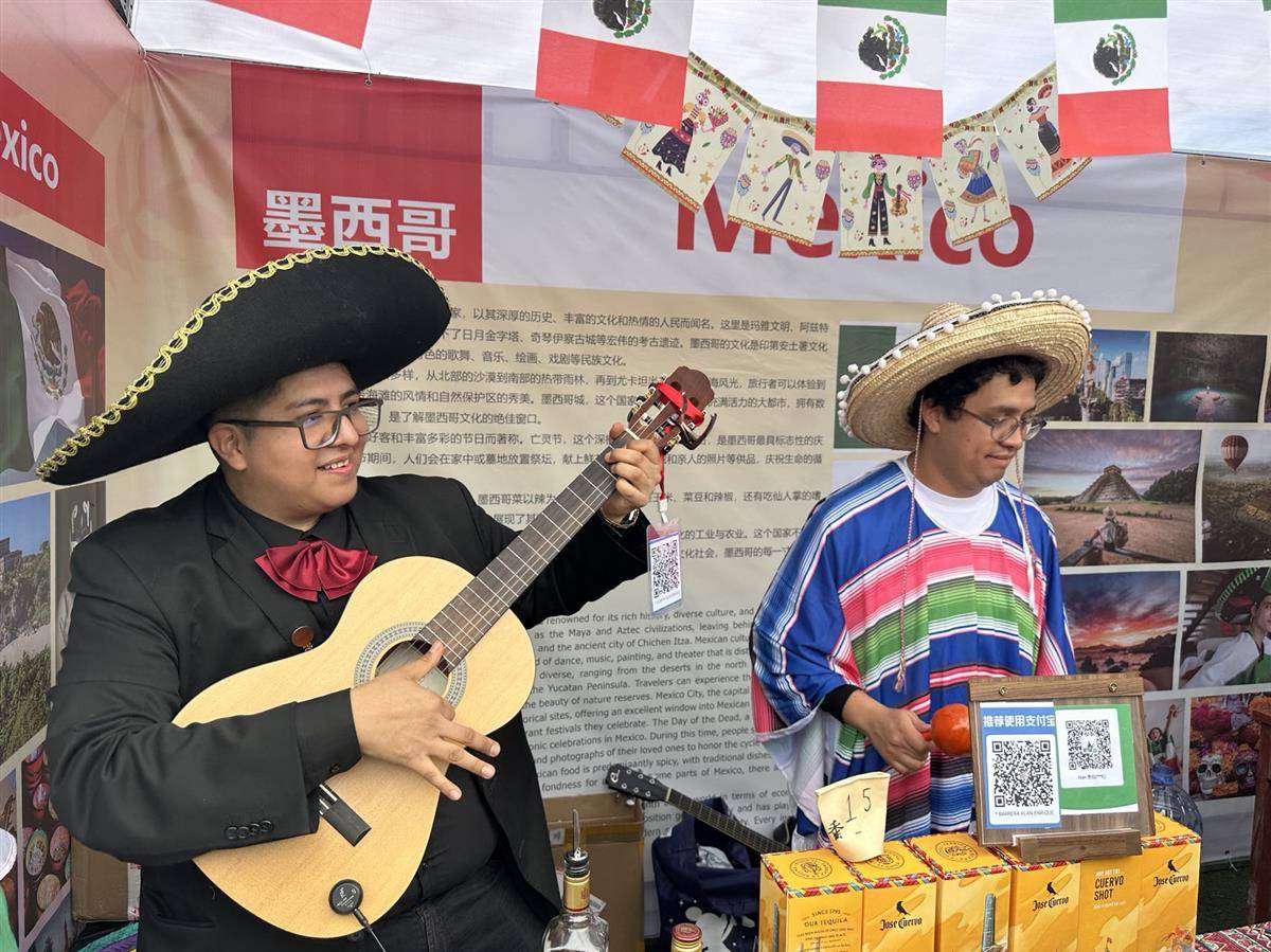 “我们都有一个家,名字叫中国……”头戴墨西哥宽边帽,来自墨西哥的留学生阿兰背着吉他,字正腔圆地唱起歌曲《大中国》,让不少路过的观众驻足一同哼唱。在人群的簇拥下,他还弹唱了许多墨西哥歌曲,让观众们感受的墨西哥风情。演出结束后,阿兰兴奋地说,大家精心准备了很久,就是想给大家展示原汁原味的墨西哥文化。