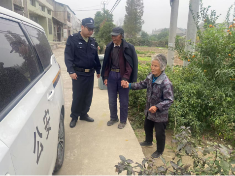 随后,民警驾驶警车护送老人回家。家属见到老人平安归来,激动地紧握民警的双手致谢。