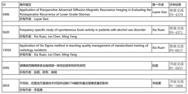 在学术大会中,潜江市中心医院CT/磁共振室投稿的3篇论文被选为壁报交流,2篇作书面交流,将在接下来的大会上与全国各地专家学者共同进行探讨。