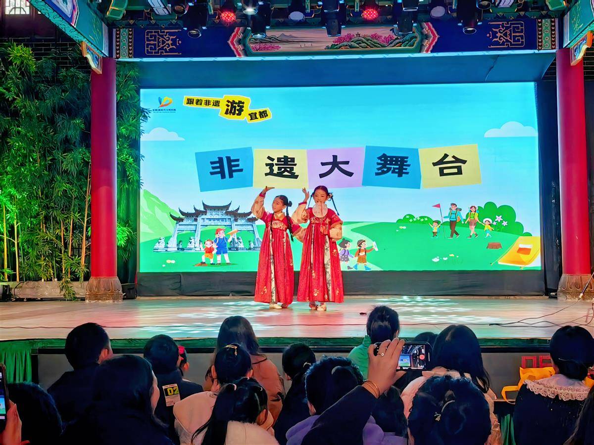 湖北日报讯(记者李光正、通讯员王斯婷)11月24日,“跟着非遗游宜都”文明实践活动在宜都市青林谜镇举办,该市100组亲子家庭体验了一场丰富多彩的文化盛宴。舞台上,亲子家庭演绎的舞蹈等节目,赢得阵阵掌声。