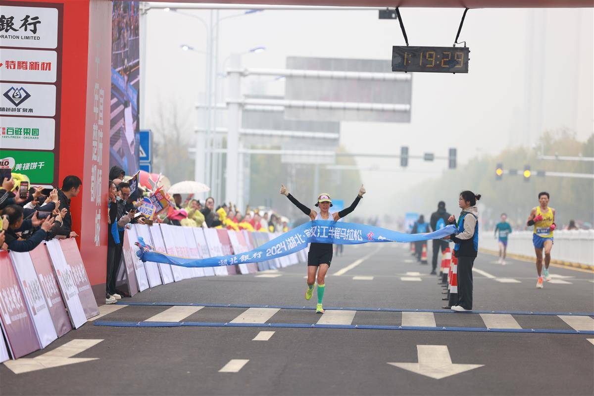 “1小时19分30秒!”来自湖北武汉的选手伍玲夺得女子半马冠军。