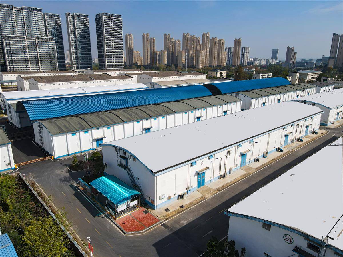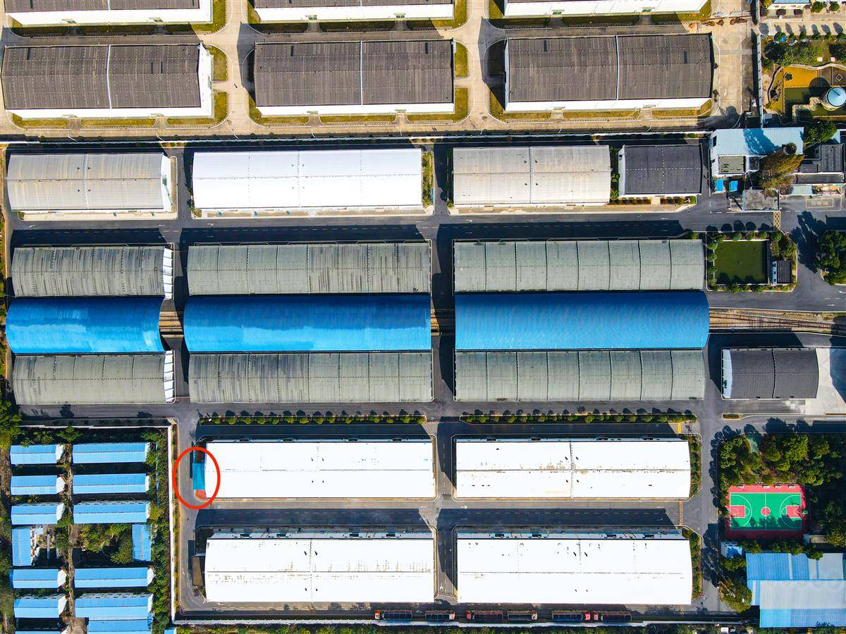 左下角红框处的蓝顶建筑为氮气设备,目前可为省储备粮武汉公司的8座粮仓供氮气(受访单位供图)