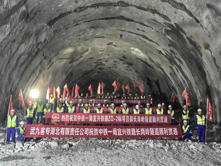 湖北日报客户端讯(通讯员夏禹、万陈齐、乔长姣、龚靖、苗伟)11月26日,宜兴高铁长岗岭隧道安全顺利贯通,至此,全线23座隧道已贯通21座,为后续建成通车奠定了坚实基础。