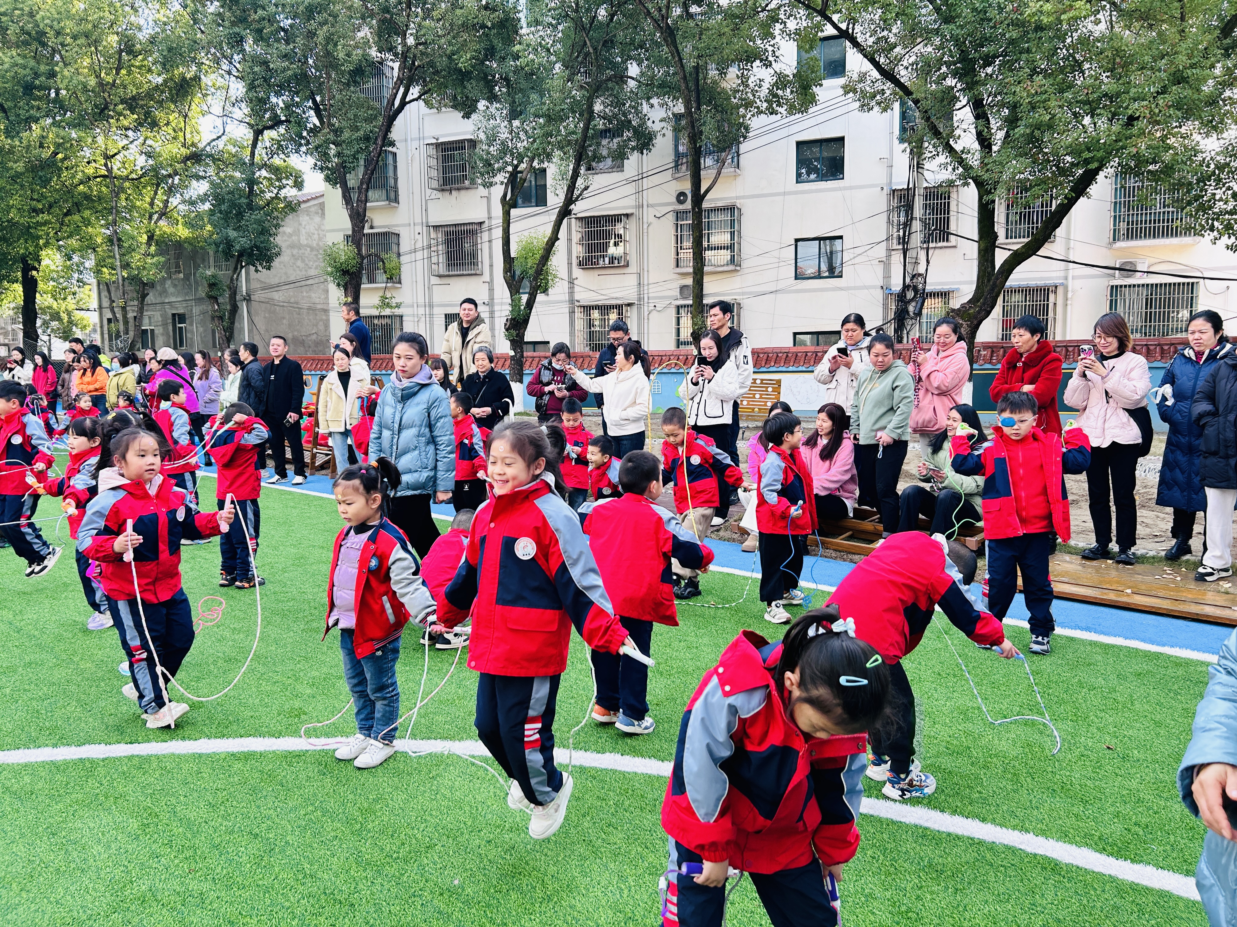 在户外自主游戏中,孩子们积极活动、主动探索、大胆尝试,发挥想象和创意。家长则纷纷将孩子的精彩瞬间记录下来。不同形式的亲子活动,拉近了亲子、师幼的距离。