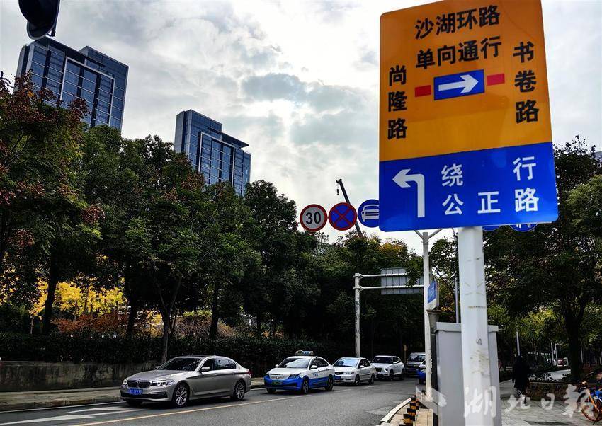 11月26日,武汉市武昌区沙湖环路书卷路口,机动车按信号灯指示单向通行。近日,武昌交通大队发布公告,自2024年11月23日至2025年7月30日,沙湖环路进行一流城市电网工程施工,依法调整沙湖环路(尚隆路至书卷路)由西向东单向通行,东向西方向车流主要由书卷路—公正路—友谊大道绕行,部分远端车流绕行兴国南路—中北路—公正路。交警部门提示,请市民合理规划出行安排,按照交通信号指示通行,最大限度降低因封路施工对出行造成的影响。(湖北日报全媒记者田悦 通讯员 程正锋 摄)