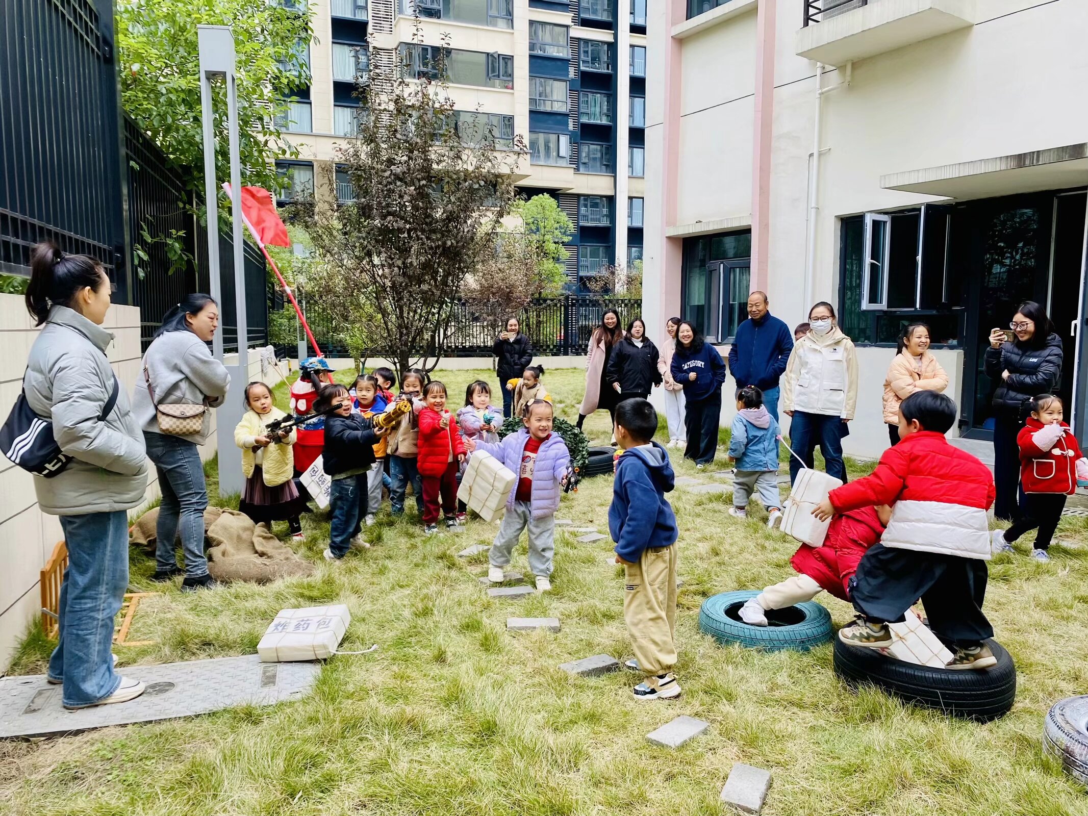 家长们走进幼儿园,观摩孩子们丰富多彩的集体教学和区域活动。老师们通过生动的故事、有趣的游戏,让孩子们在轻松愉快的氛围中学习知识、收获成长。户外操场上,自然探索游戏、涂鸦游戏、沙水游戏、野战游戏……一个个自主游戏区域热闹非凡。这些游戏不仅锻炼了孩子们的身体素质,更激发了幼儿的探索欲望和好奇心。