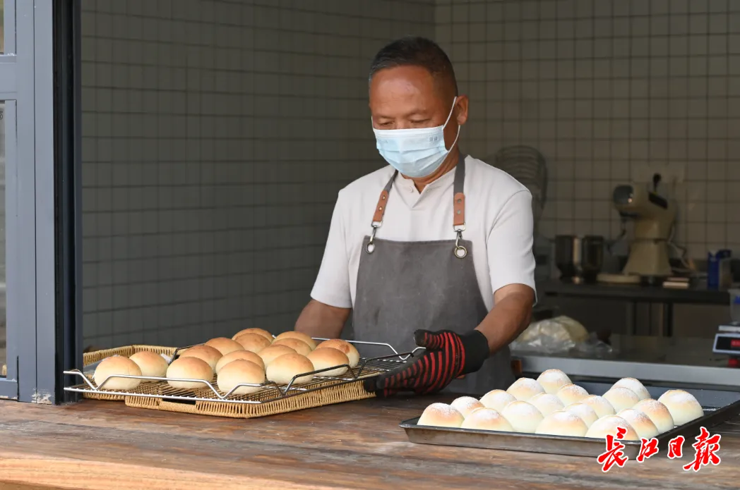 咖啡馆右侧,是与之配套的柴窑面包房。新鲜出炉的面包现烤现吃,微焦的面皮混合面粉香,人多的时候还需要排队。