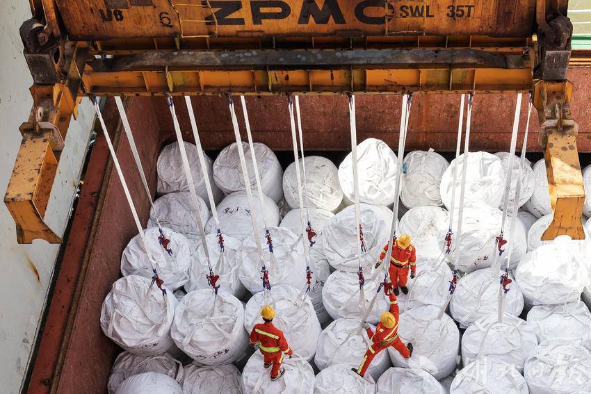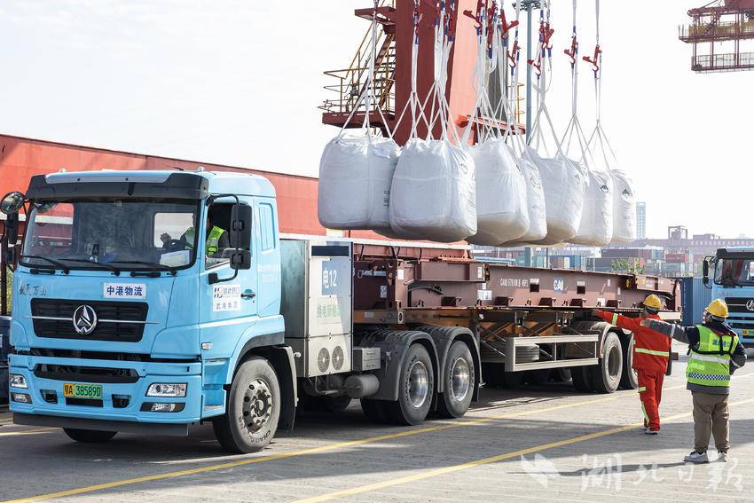 据悉,新开的“印尼拉博塔港—武汉阳逻港”航线采用海江联运方式直达武汉。原来从印尼出发需在广州等国内港口中转才能抵鄂,现在通过国际直航,可以从印尼直达武汉阳逻港,打通循环经济产业链关键原材料镍相关产品的进口贸易通道,实现原料运输成本大幅下降,增强企业竞争力。 (湖北日报全媒记者 任勇 通讯员 胡艳 摄)