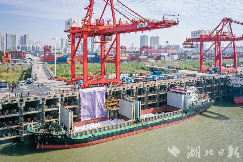 满载原料镍相关产品的印尼直航货轮“新翊远1轮”抵达武汉阳逻港。