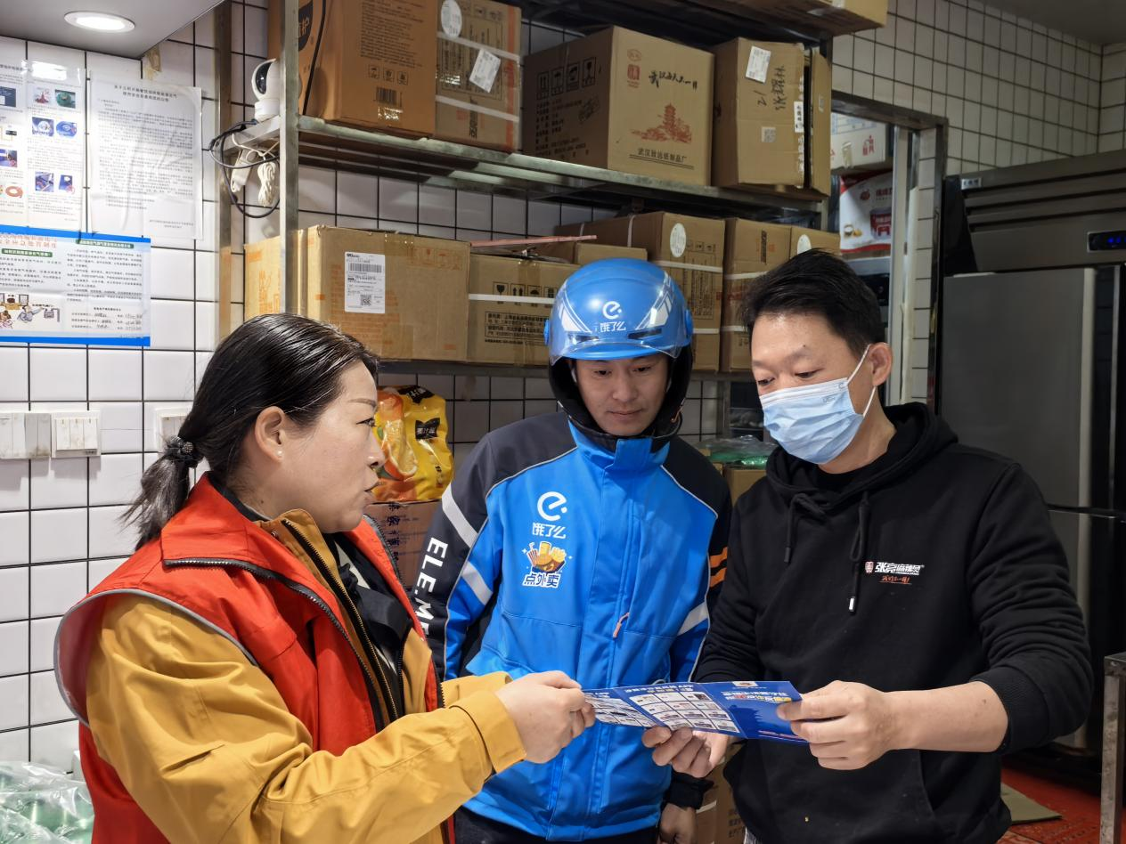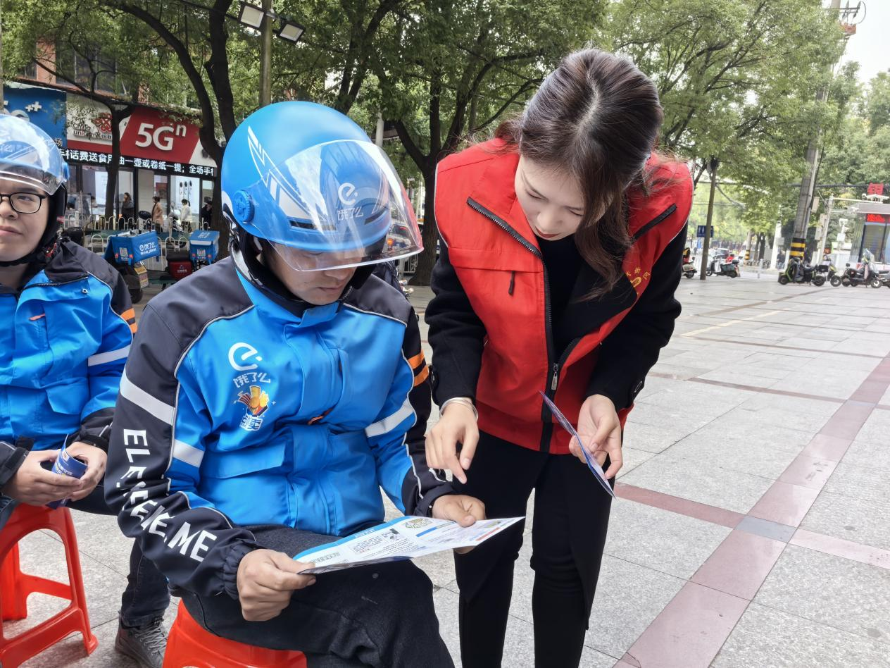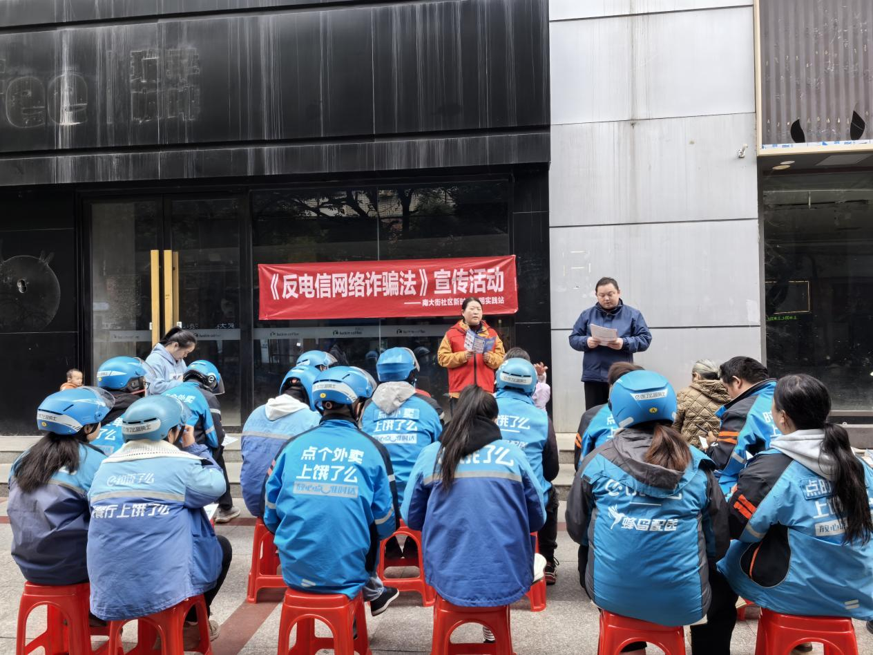 “常见的诈骗类型有哪些?遭遇电信诈骗该如何应对……”活动中,邮政银行工作人员向新就业群体代表开展防范电信诈骗知识宣讲,并通过真实电诈等典型案例进行现场说法,从诈骗类型、易被骗群体、常用诈骗手段、方式、特点及识别防范技能等方面进行细致全面讲解。接着,南大街社区“桂乡管家”中的“社区管家”和“网格管家”鼓励小哥们在派单、接单的同时给商户、居民附送一份折页手册,将反诈知识送入家家户户,织密社区“反诈宣传网”,打破反诈宣传“最后一米”。