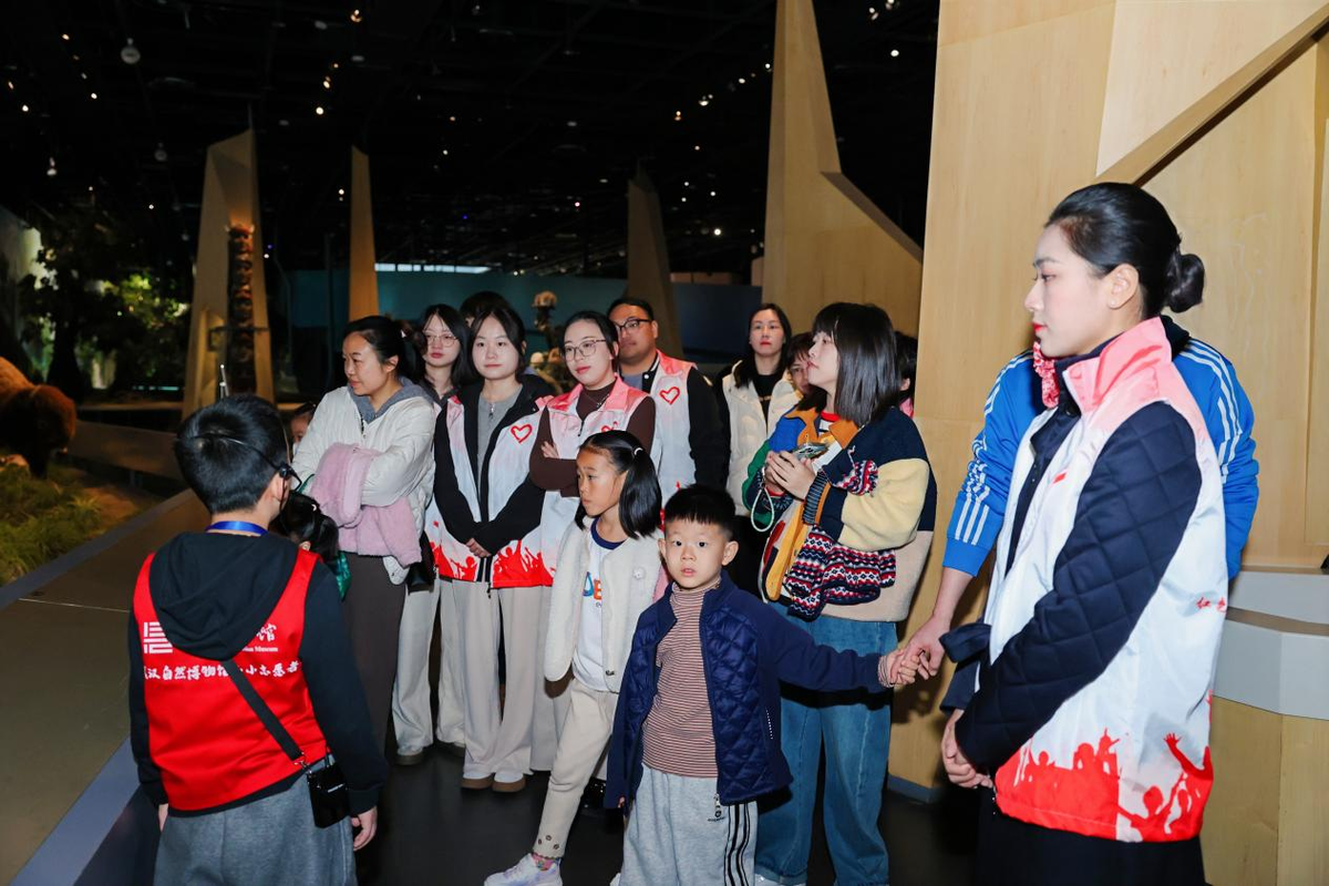 活动在长江文明馆(武汉自然博物馆)参观中拉开帷幕。10时许,长江文明馆志愿者带领“八七红”志愿服务队的队员们,一同参观了以大河为背景、生命为主题的武汉自然博物馆,本次参观包含序厅、大河沧桑、大河珍灵、大河沉思和大河探秘五大展区,大家了解了大河流域相关的地学背景与河流生命史。