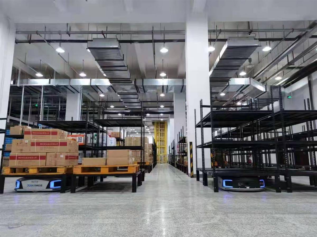 九州通在全国建成141座高标准物流仓库和相关配套设施设备。图为物流中心AGV机器人。