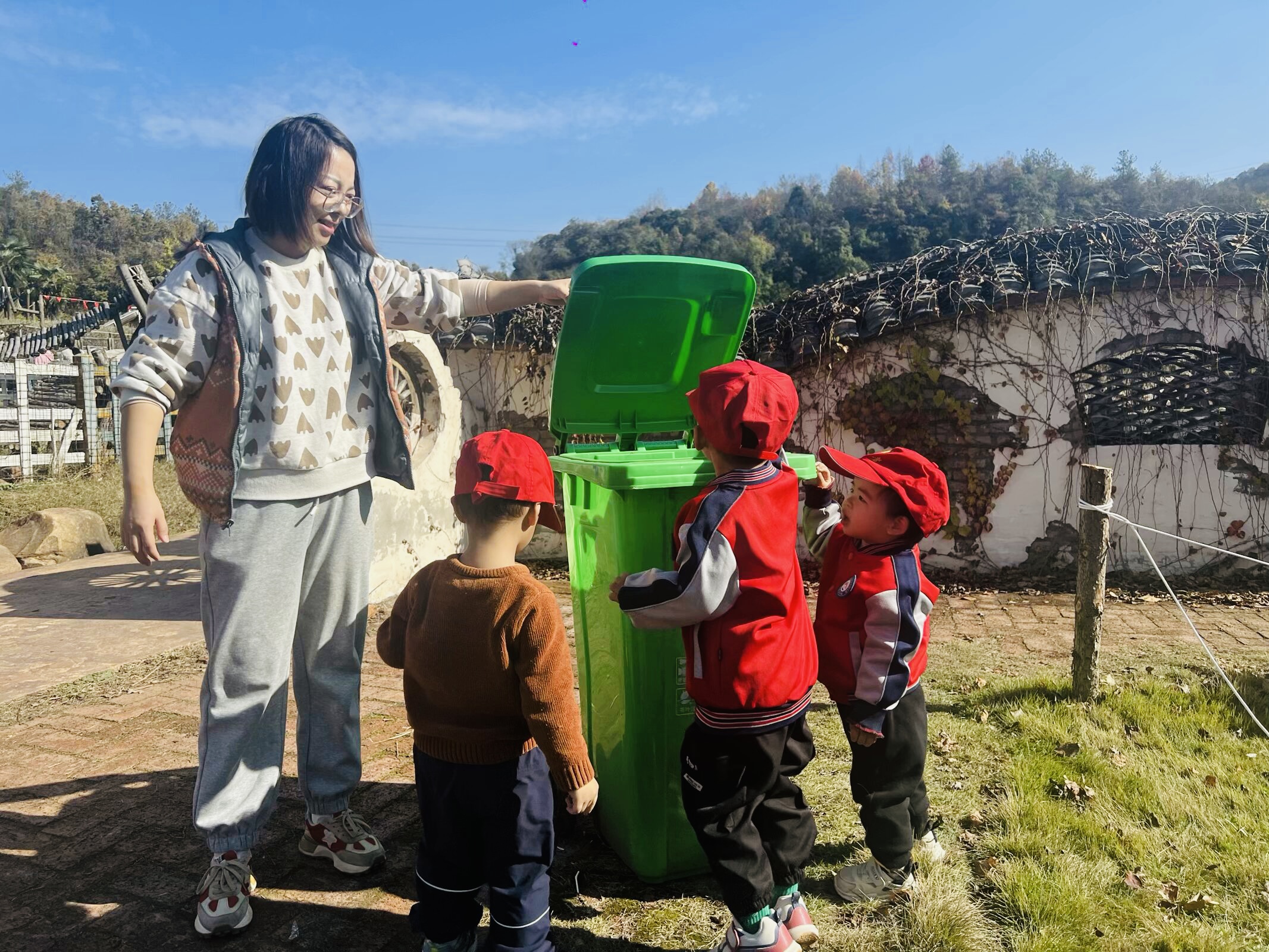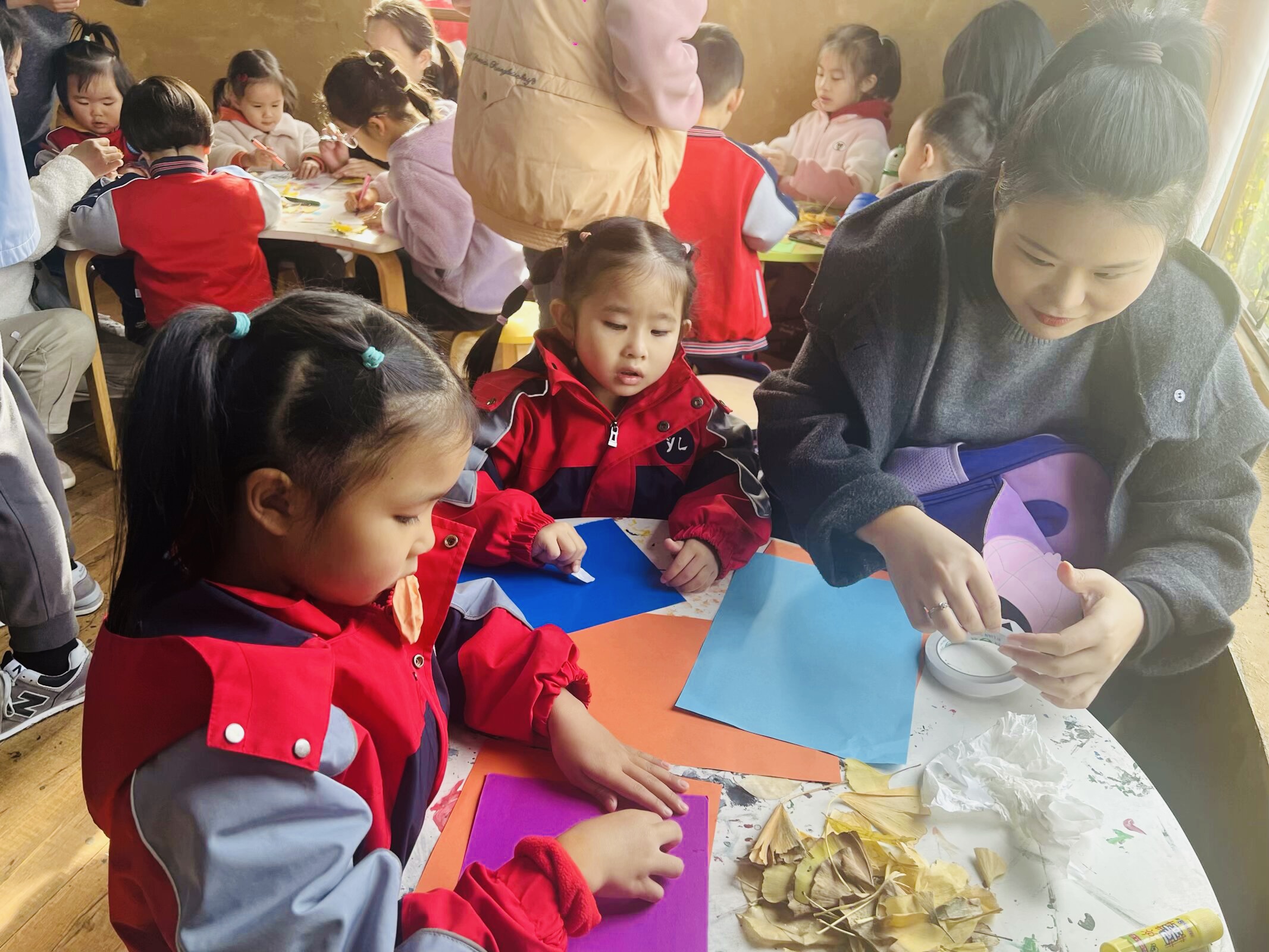 活动在欢快的律动《动物模仿操》中拉开序幕,在赶小猪比赛中,孩子们手持小木棍,小心翼翼地驱赶着“小猪”,欢笑声回荡在农场。最让孩子们兴奋的是与小兔子、小鸭、小鸡、鸵鸟等动物的亲密接触,孩子们纷纷拿出准备的食物投喂动物。随后亲子互动游戏“扁担挑娃”“剥玉米比赛”等趣味活动精彩纷呈,孩子们也体验了一把“小小农夫”的乐趣。家长与孩子们还共同发挥创意,将农场里收集到的树叶制作成一幅幅精美的画作,现场气氛热烈非凡。最后,孩子们还和家长们一起帮忙清理了农场的环境卫生,帮助维护小动物们清洁的生活环境。