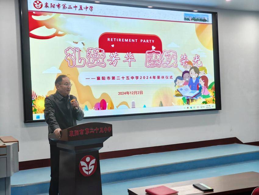湖北日报客户端讯(通讯员孙元惠)伴随着不舍与祝福,12月2日上午,襄阳市第二十五中学在阶梯教室举行了一场温馨而庄重的荣退仪式。