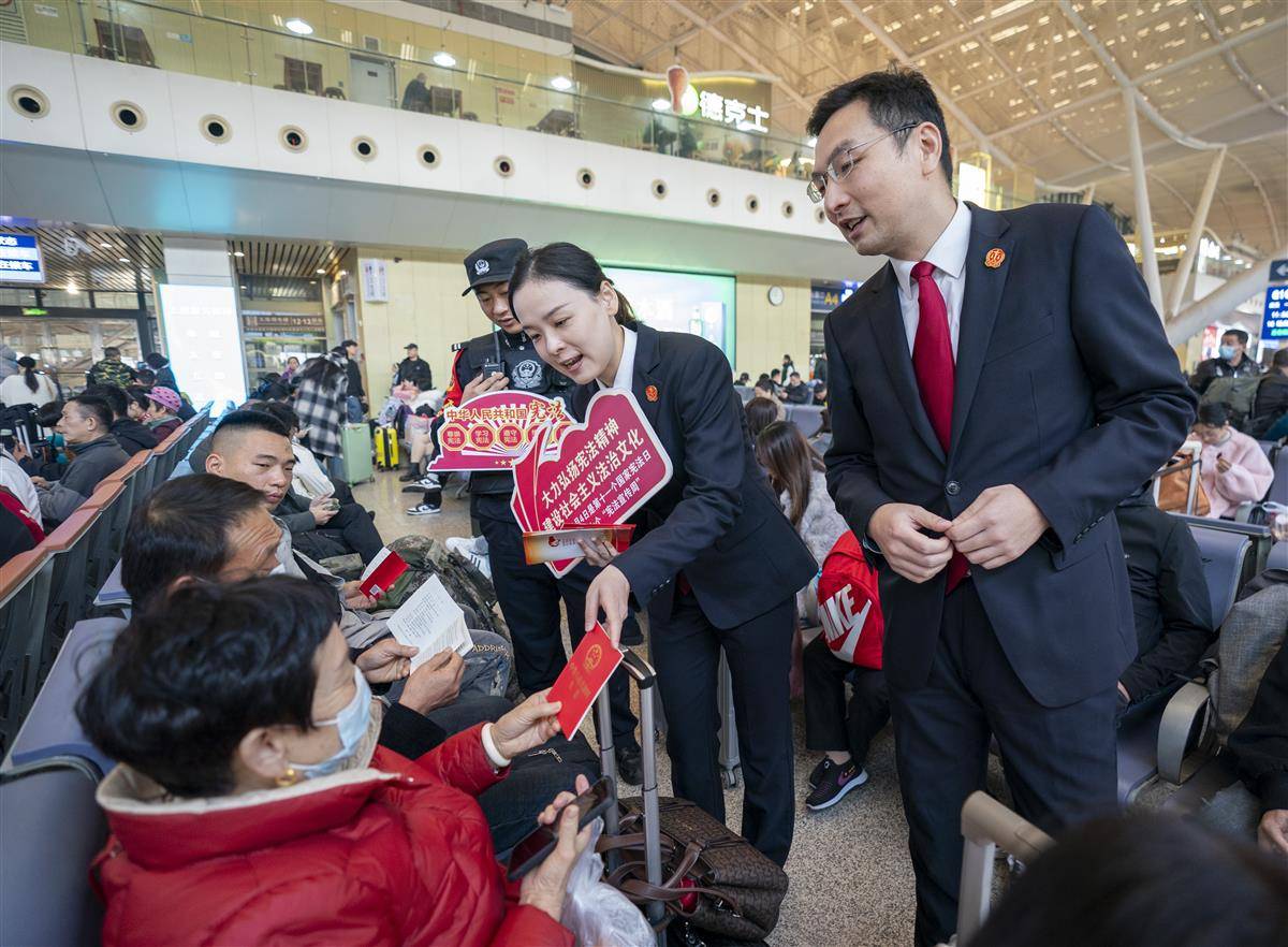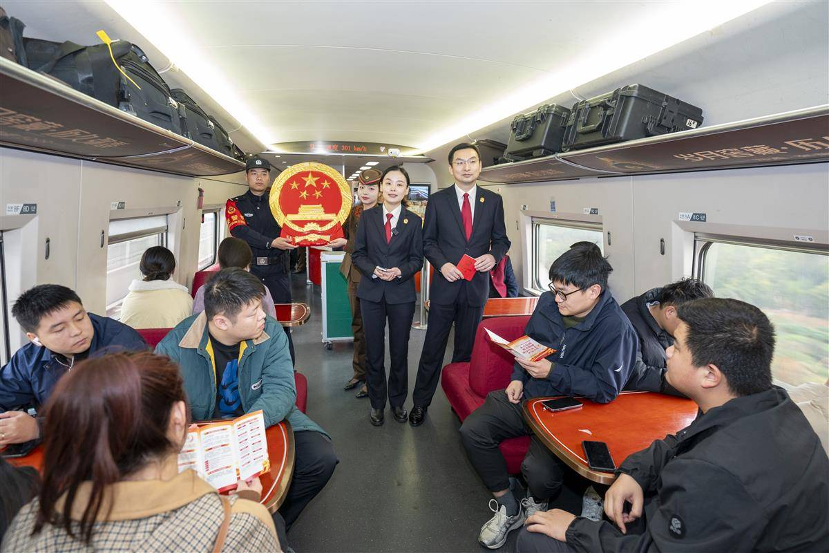 列车上,法官们通过国家宪法日的由来、宪法的产生和历史发展、宪法修订的主要内容以及如何遵守宪法等方面向旅客们现场普及宪法知识。法官、乘警和乘务员还热情地为旅客发放《中华人民共和国宪法》单行本等法律宣传资料,引用司法实践中的真实案例,面对面讲解与大家生活息息相关的宪法条款,以释法析理的方式,为旅客们解答他们关心关切的热点案例及相关法律知识,让学习宪法、宣传宪法、遵守宪法深入人心。