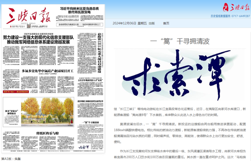 作为长江支流黄柏河东支梯级水库中的最后一级、东风渠灌区渠首取水工程,尚家河水库担负着宜昌市200万人口饮水和100万亩农田灌溉的重任。其水质一直在重点呵护之列。这次“鸟枪换炮”,从传统燃油动力改为新能源电池驱动,既是对水质的“提级”守护,也是对乘船群众“体感”的改善。