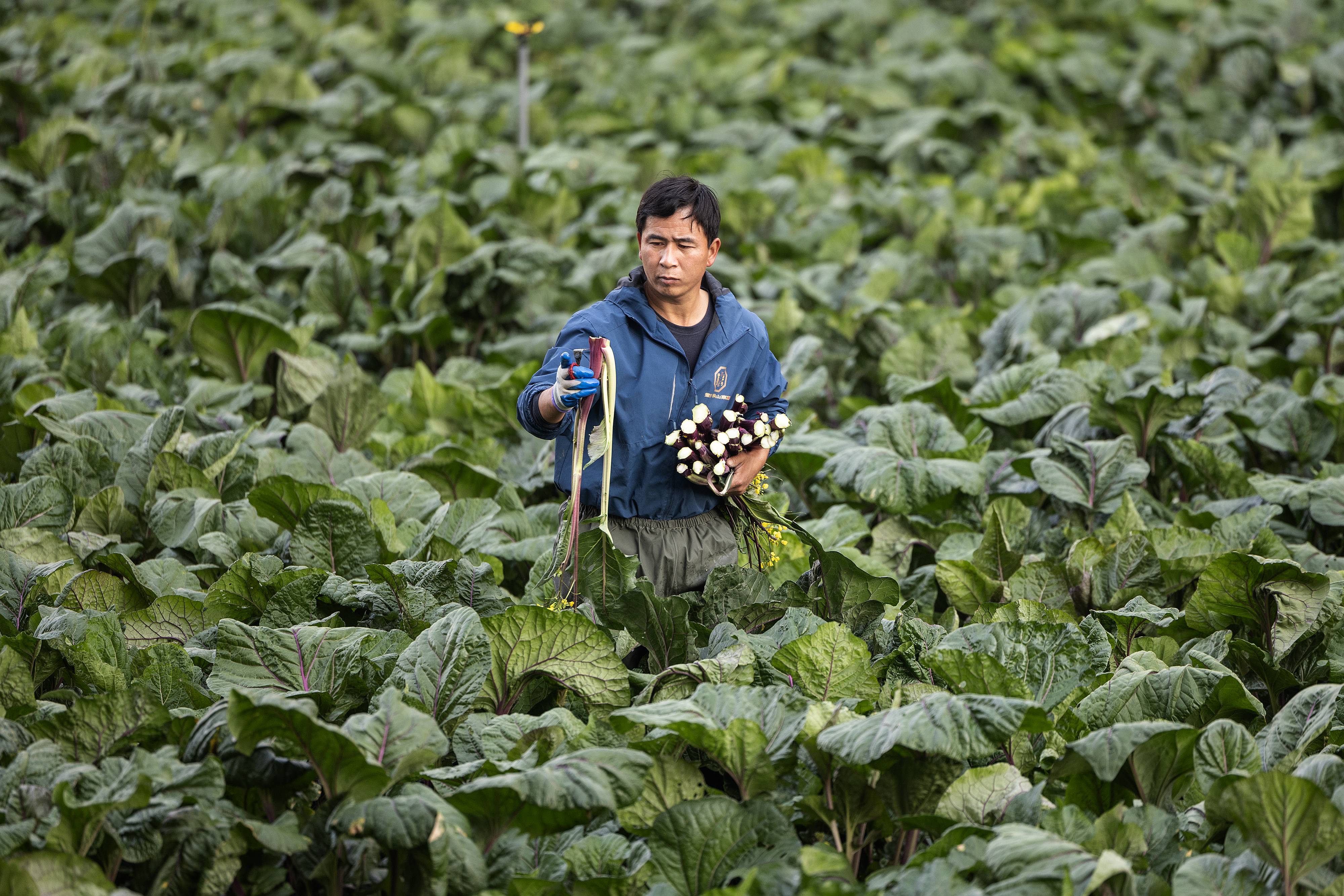 12月6日,随着气温不断下降,洪山菜薹发源地和原产地的菜薹进入了丰收季,工人们已开始大批量采摘。正宗原产地的洪山菜薹因其质脆味醇、清腴可口的特质驰名中外,每斤100元起步,最高可至1000元一斤,被称为“蔬菜顶流”。