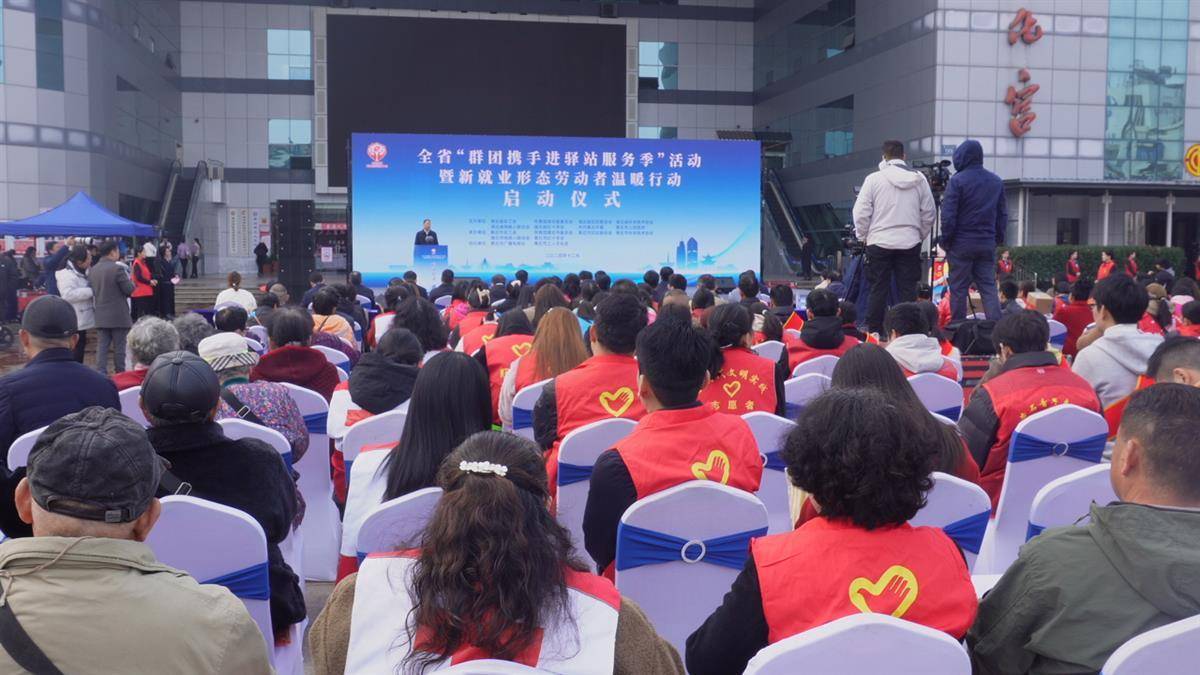 活动仪式上,工会、团委、妇联、科协、残联、红十字会等六家群团组织为新就业形态劳动者代表和所联系的群体代表送上温暖大礼包,共同启动“服务季”活动和温暖行动。根据活动安排,即日起至2025年2月,全省各级工会、团委、妇联、科协、残联、红十字会以全省5035家工会驿站为依托,选择沿街靠路、人流密集、条件成熟的121个工会驿站(名单见附图),作为首批开展“群团联动”共建站点,联合开展以暖“新”服务、志愿服务、家庭服务、科普服务、助残服务、救护服务为主要内容的群众关爱服务活动,以及以新就业形态劳动者和农民工为主要群体的温暖行动,让群众在家门口享受“一站式”综合性的群团服务。