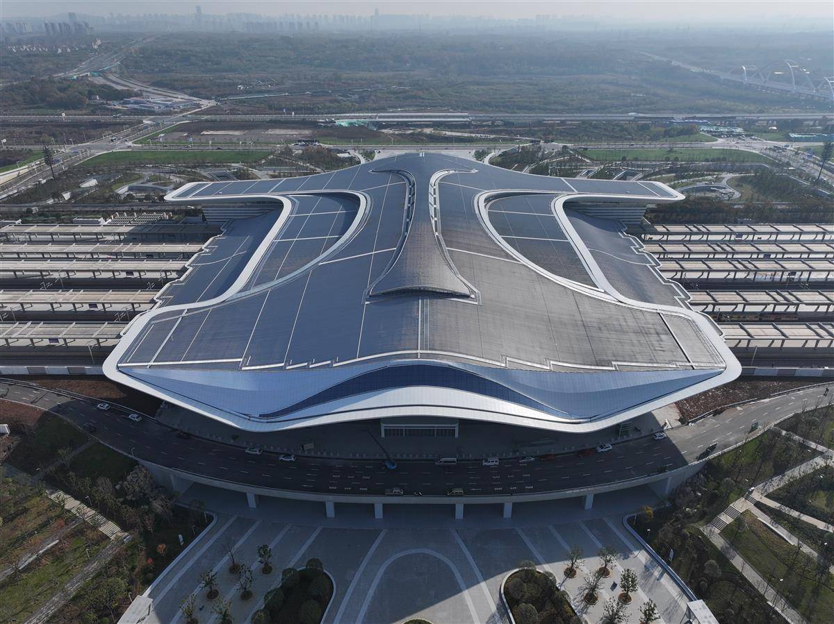 鸟瞰荆门西站(湖北日报全媒记者 张诗秋 摄)