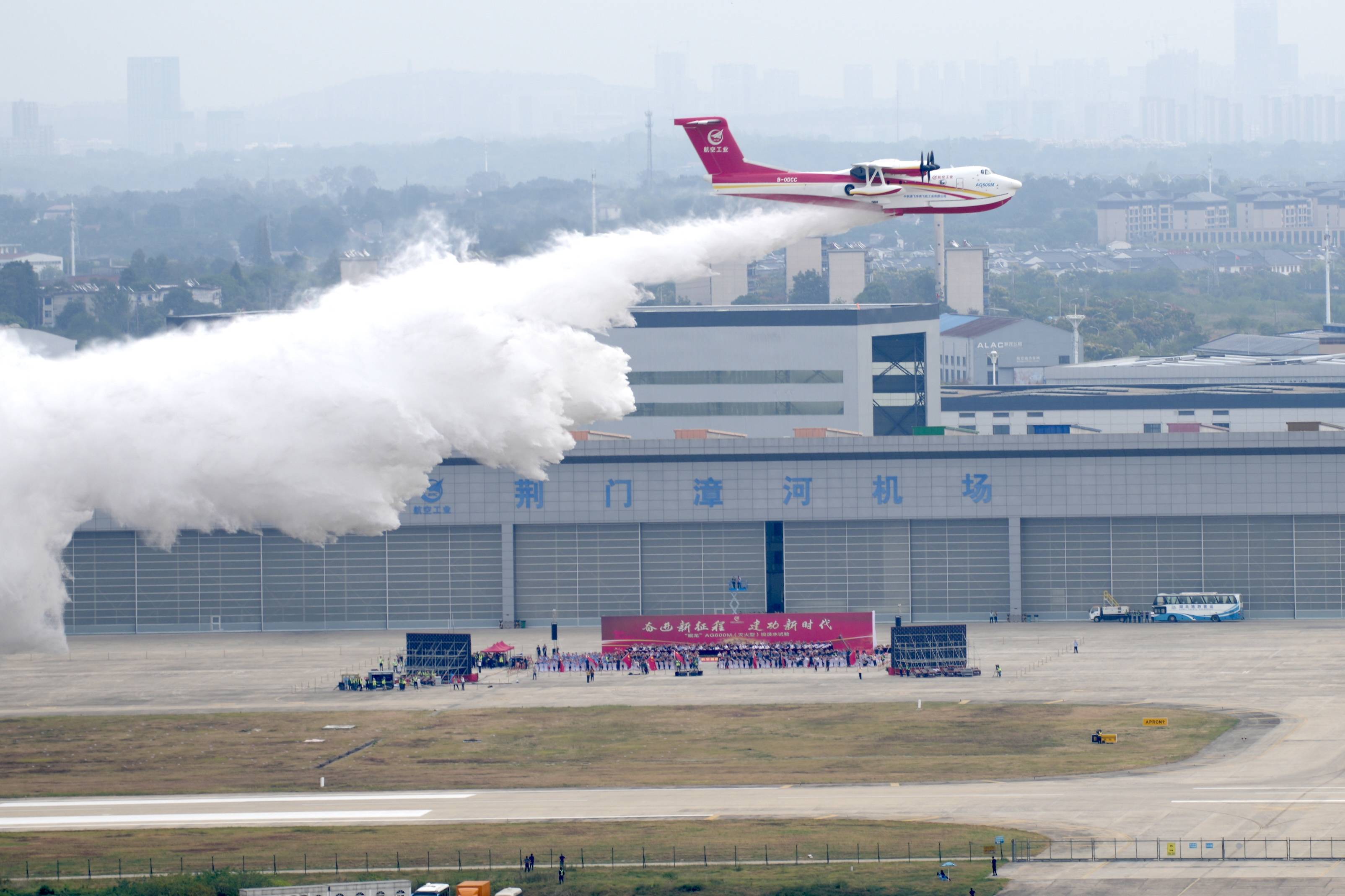特飞所领军,荆门通航产业近年来发展步入快车道。2014年,成功打造全国首个爱飞客航空综合体——爱飞客小镇。2017年,获批全国首批、湖北唯一的国家通用航空产业综合示范区。与此同时,各种类型的“荆门造”特色航空重器横空出世。2013年,“海鸥300”轻型水陆两栖飞机在漳河水上机场首飞成功。2018年,由中国自行设计研制的大型灭火、水上救援水陆两栖飞机鲲龙AG600,在漳河机场成功实现水上首飞起降。2022年,鲲龙AG600M灭火机,在漳河成功完成12吨投汲水试验,该机最大起飞重量53.5吨,可在20秒内一次汲水12吨。