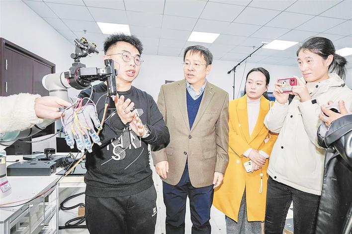 团队成员在一旁正在进行的实验,则更让人直呼科技感十足。只见一名工作人员用机械臂去抓杯子时,另一方的工作人员通过相关设备竟感受到了同样的抓取感。极目新闻记者上前体验时,在工作人员同钢丝板摩擦机械臂尖头时,记者手上感受到了清晰的震动感和钢丝的触觉。“这是6G技术的另一大应用场景,信息传输将实现多样化,不只是声音,触觉、嗅觉等都将能实现。”江涛说,这在电子商务和智能医疗等领域都将具有很大的潜力,比如顾客线上购买物品时,在线就可以触摸感受服装的材质。