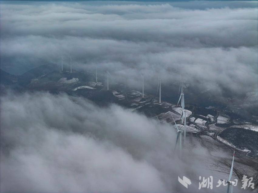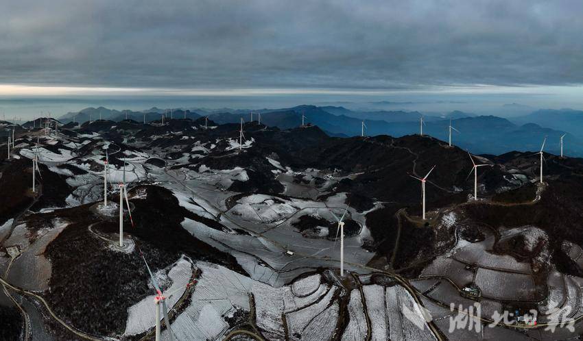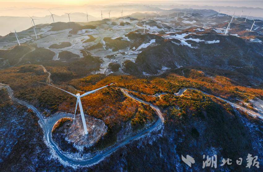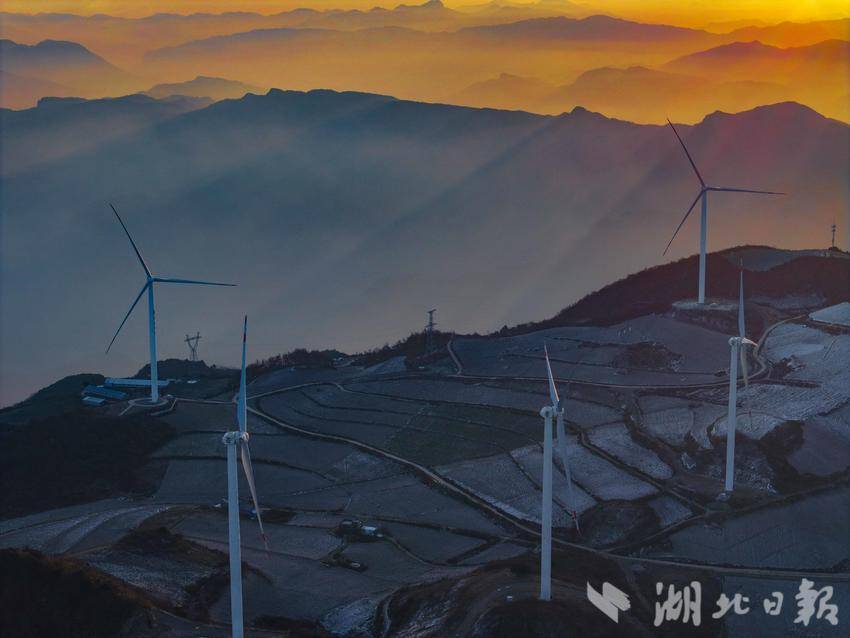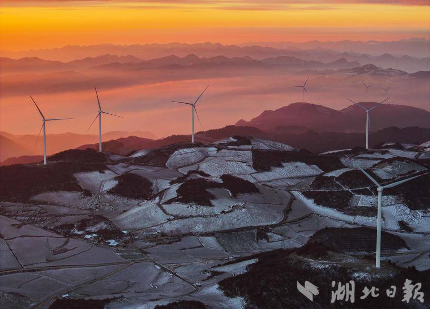 湖北日报客户端讯(通讯员韩军)大雪时节,秭归县云台荒风力发电机组在运转工作,与晨曦、瑞雪、云雾、田舍相映成景,构成一幅绚丽多姿的生态画卷。