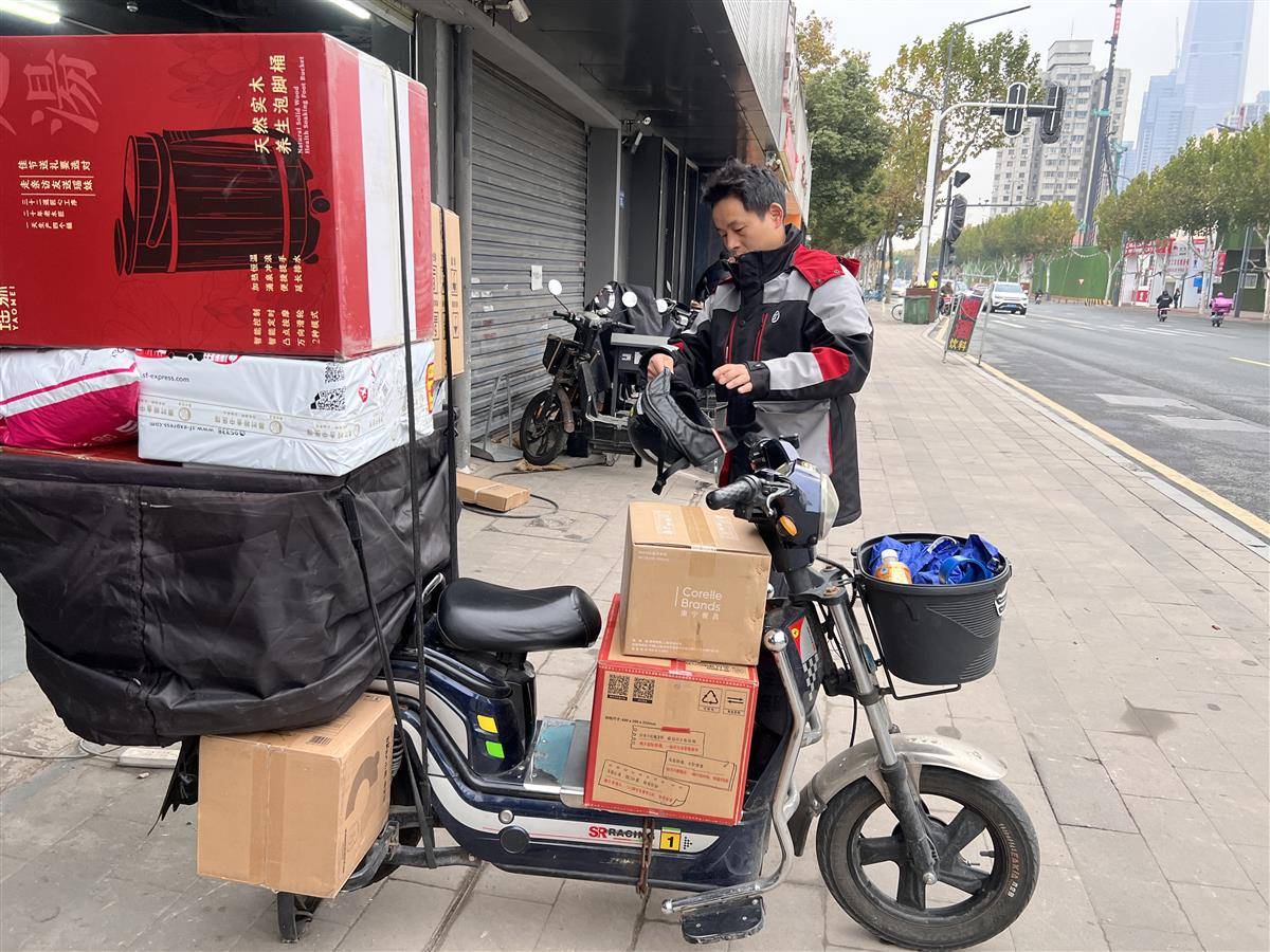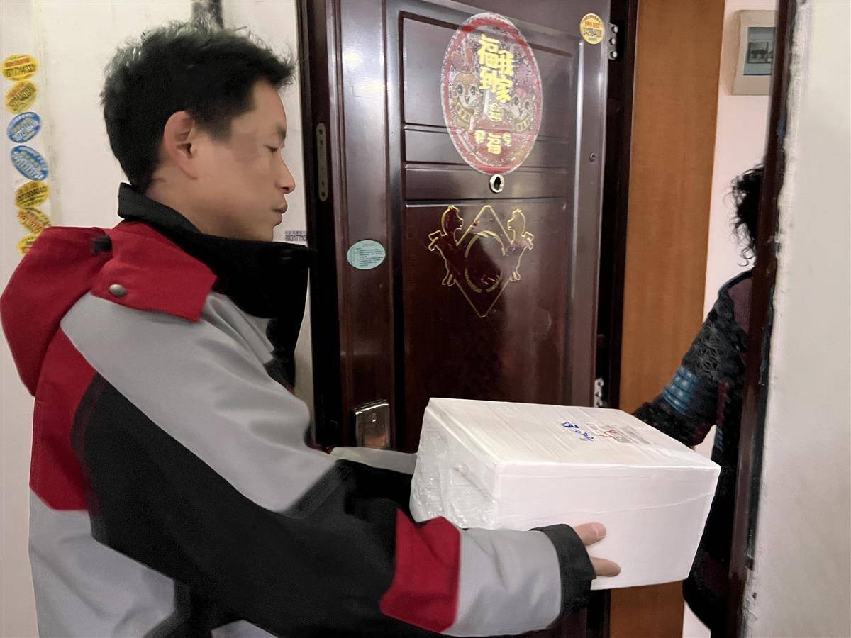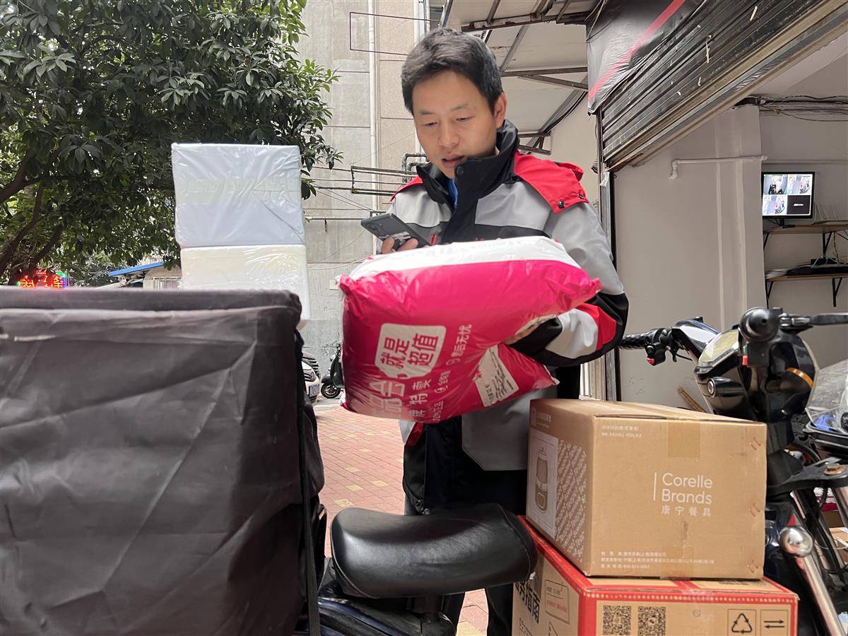 “喂,李女士,请问您在家吗?”8点30分,夏明星到达中山路社区快递驿站,他确认客户在家后,便熟练地驾驶着电瓶车穿梭于砖瓦巷、汉安里、小铁路等狭窄的小街里巷,把快递送到居民家中。为了节省时间,夏明星通常会在下午1点前完成上午的任务,利用短暂的间隙匆忙吃午饭。有时太忙,连这顿饭都顾不上。