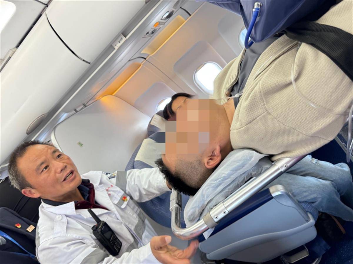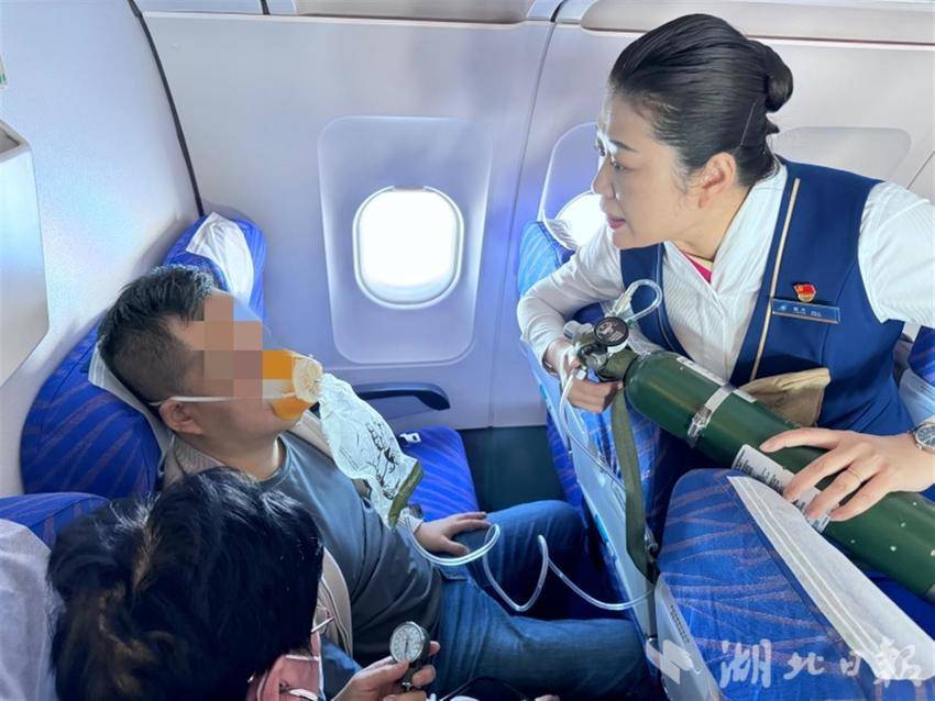 看到曹先生痛苦的神情,廖丹立即协助他返回座位,并拿出氧气瓶为其供氧。同时安排一名乘务员坐在他身旁,密切关注其状态。随后通过机上广播寻找医生,并将客舱内情况报告给机长。