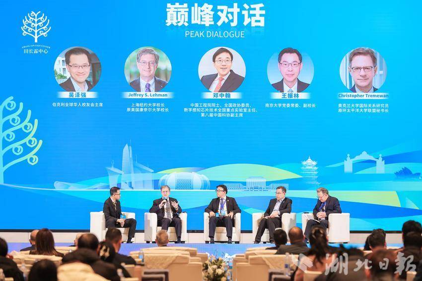 大会现场,田长霖兄长、美国著名侨领田长焯,中国工程院院士、第十四届全国政协委员邓中翰,湖北大学校长刘建平,南京大学副校长王振林,上海纽约大学校长Jeffrey S. Lehman,原环太平洋大学联盟秘书长Christopher Tremewan,伯克利全球华人校友会主席吴泽强等300多位院士专家、大学校长、青年学者和优秀企业家,围绕创新引领未来展开对话、交流,共建创新之路,同促合作发展。