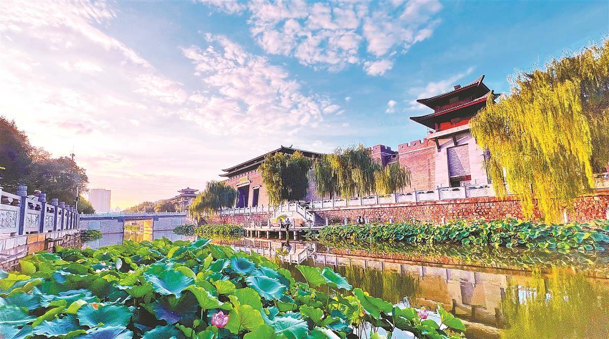 “南水”的到来,让“缺水之城”变为“北方水城”。八月七日,许昌市千年护城河与古城相得益彰。 (河南日报通讯员 吕超峰 高文胜 摄)