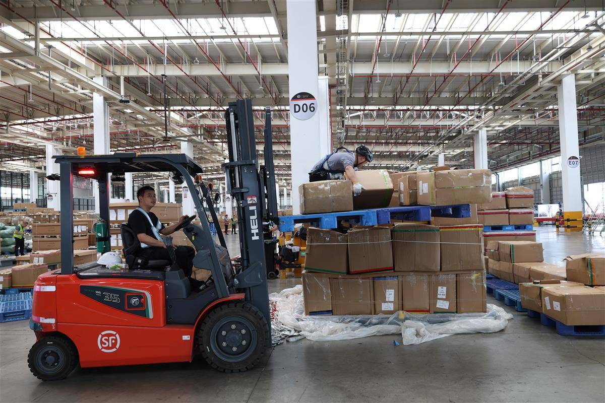 花湖国际机场顺嘉货站一片繁忙。湖北日报全媒记者周鹏摄