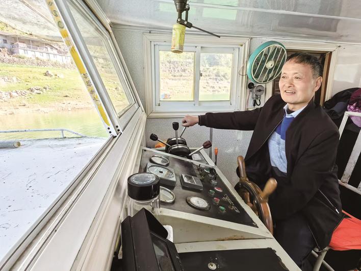 12月11日,一串“突突突”的马达声打破了宜昌市夷陵区西北口水库的宁静,“义渡人”李作玉驾驶“幸福999”号义渡船,接送村民出行,船舱内传来村民阵阵欢笑。