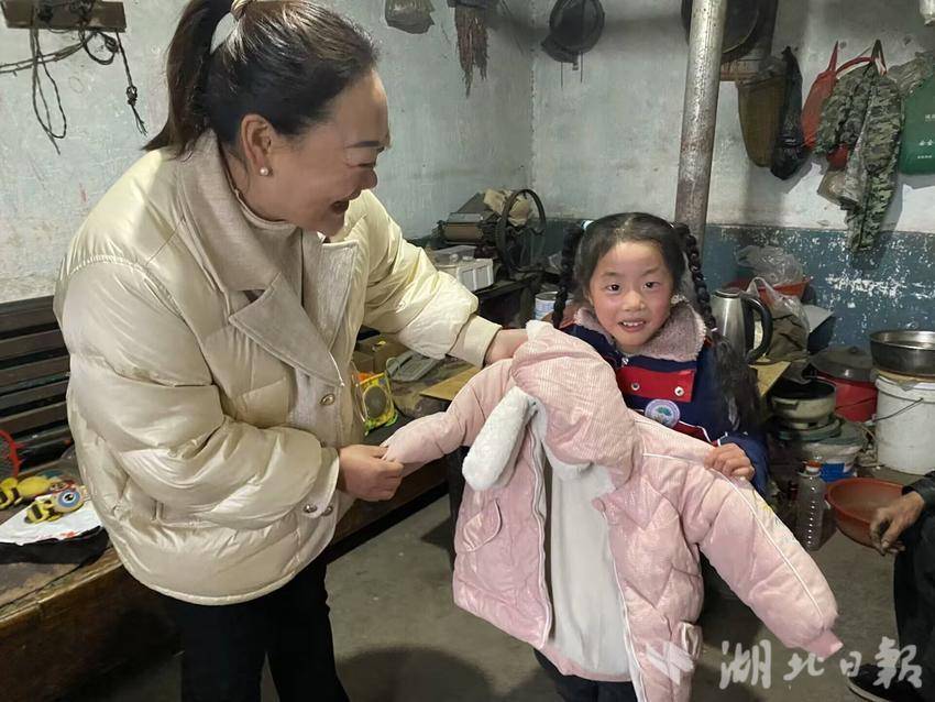 “宝贝,快来试试这件新棉衣,看老师买的合不合身。”来到孩子家中,罗园长蹲下身,轻轻为孩子穿上新衣,满脸笑意地整理着衣领,眼神里满是宠溺。孩子原本有些羞涩的脸庞,在穿上暖和新衣的一瞬间绽开了笑颜。小手兴奋地摸着衣服上的小熊刺绣,开心的说:“园长妈妈,好暖呀,我好喜欢!”这一幕,暖化了在场所有人的心。