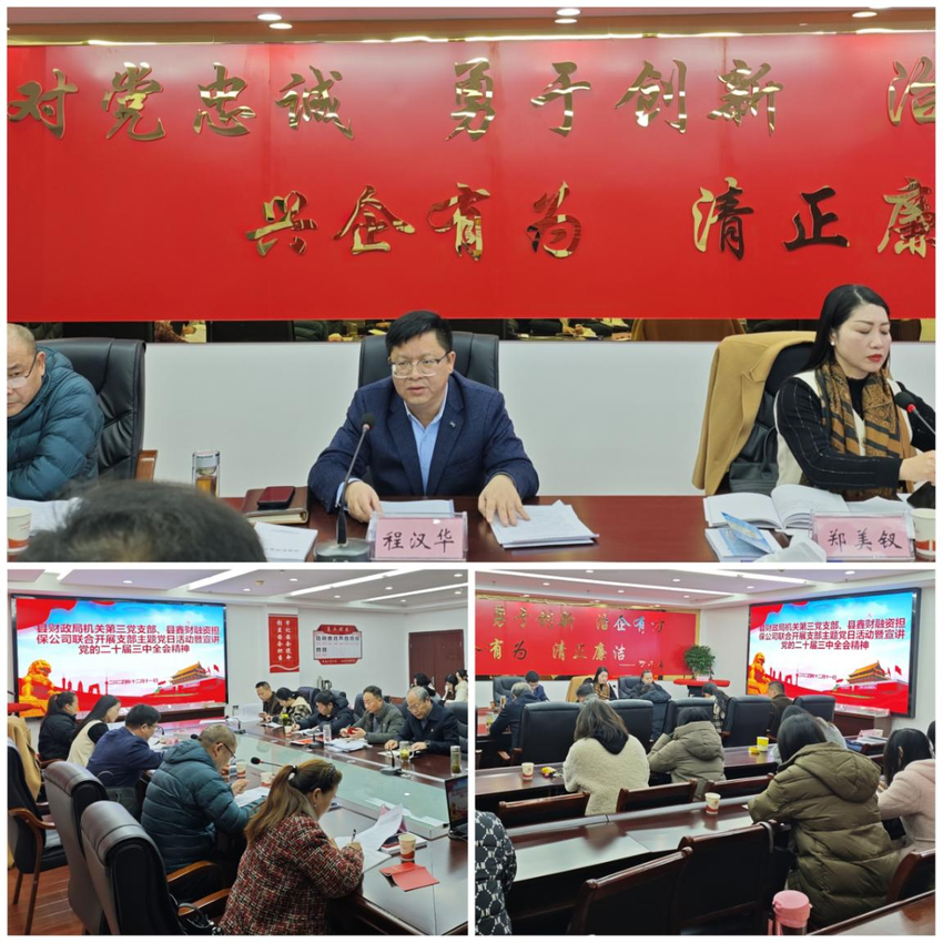 湖北日报客户端讯(通讯员郑文杰)12月11日上午,县财政局机关第三党支部、县鑫财融资担保有限责任公司党支部联合开展12月份支部主题党日活动暨宣讲党的二十届三中全会精神活动,以座谈会、实地观摩等方式,探讨如何加强党建与业务深度融合。