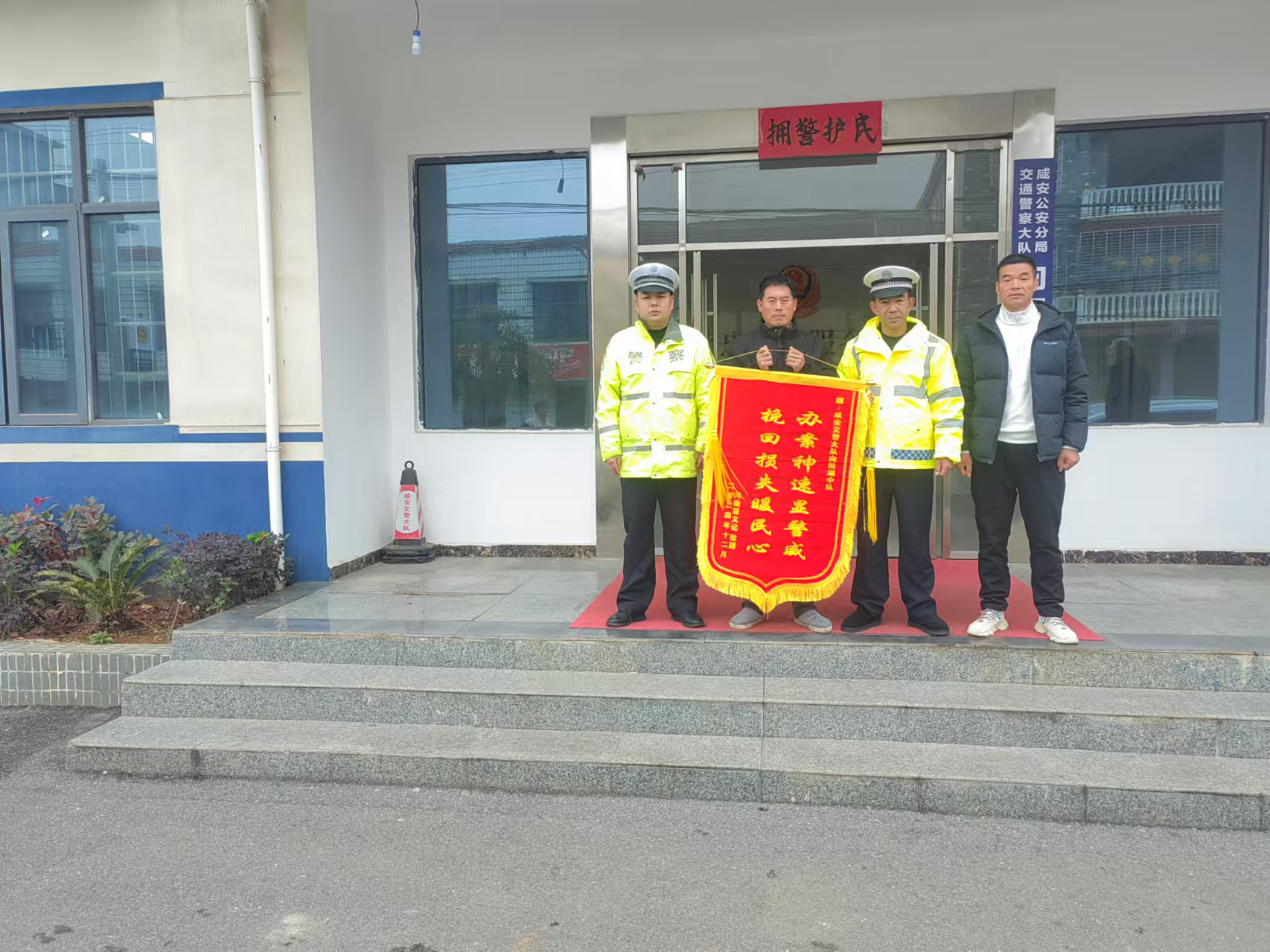 12月13日,两位伤者将写有“破案神速 雷厉风行”“挽回损失暖民心 办案神速显警威”的两面锦旗赠送给了交警,对民警高度负责的工作作风和全心全意服务群众的工作态度给予了高度赞扬。