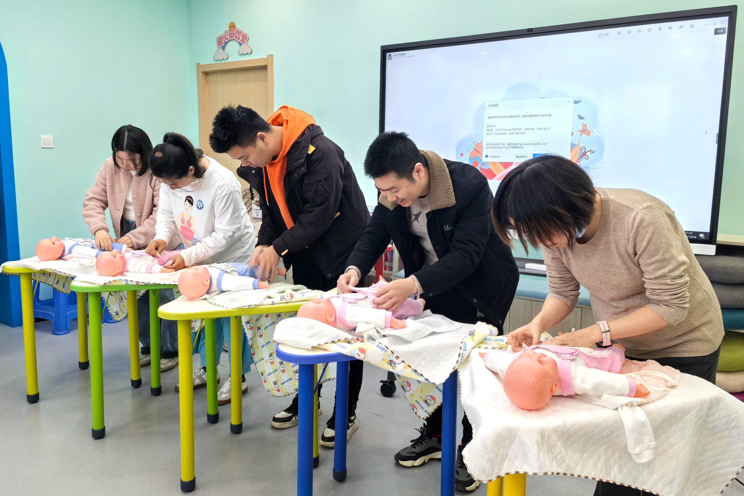 现场还开展了奥尔夫胎教音乐互动、孕妈妈展示孕期八段锦、新手爸妈在护士长的示范下进行新生儿护理实操等活动,不断将活动推向高潮。