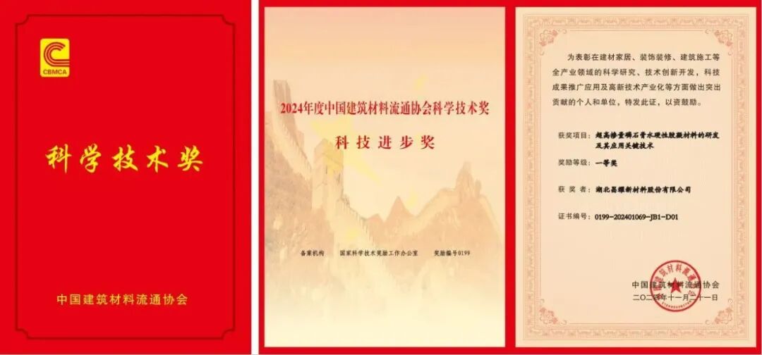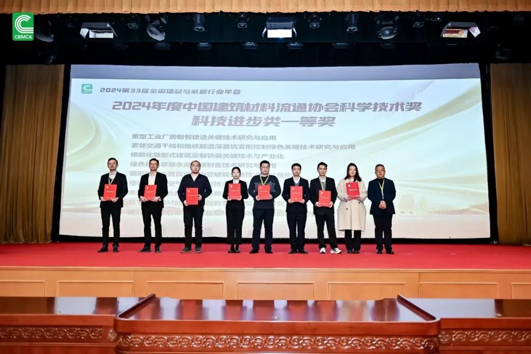 12月14日,在北京召开的第33届全国建材与家居行业年会暨中国建筑材料流通协会七届三次理事会扩大会议上,昌耀新材与武汉理工大学、湖北磷隆新材料科技有限公司、湖北昌耀新材料工程技术研究有限责任公司等单位共同完成的“超高掺量磷石膏水硬性胶凝材料的研发及其应用关键技术”从众多参评企业中脱颖而出,荣获中国建筑材料流通协会科学技术奖科技进步类一等奖。