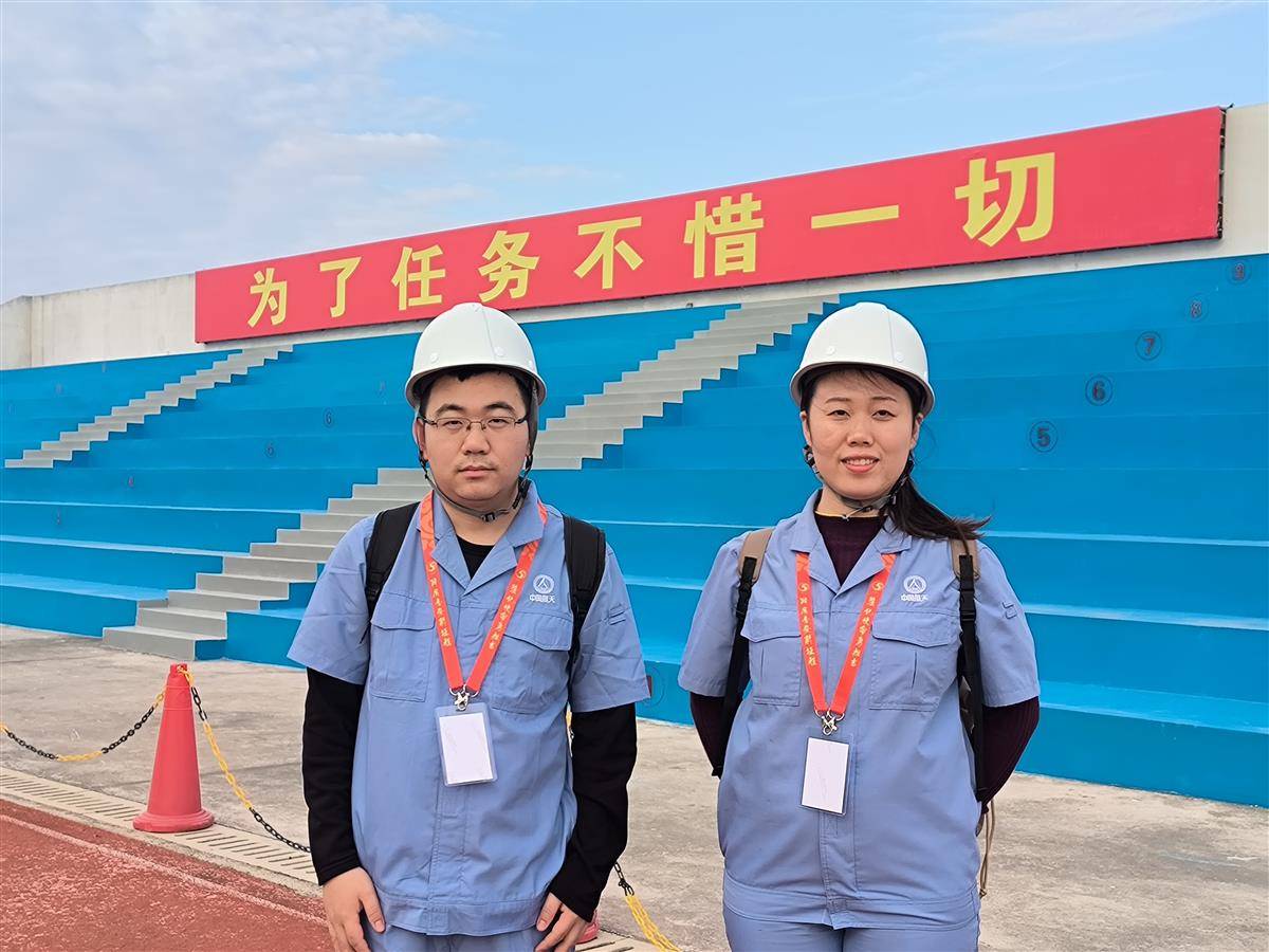 研发人员刘梦珂(右)和刘顺在发射现场。(图片由通讯员提供)