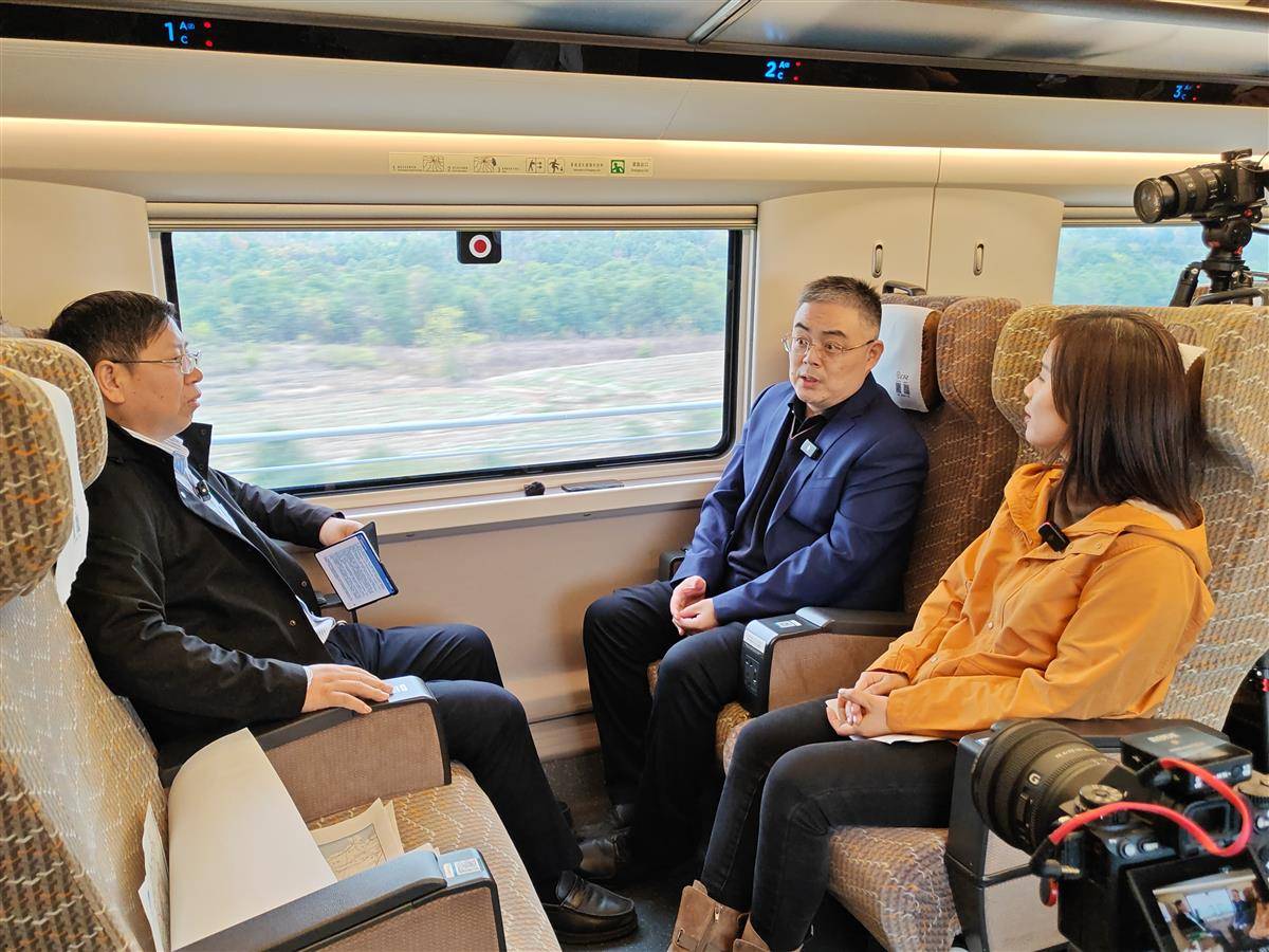 访谈图图说:《新闻访谈丨开聊吧,在这趟特殊的高铁上》录制现场。(湖北日报全媒记者 左晨 摄)
