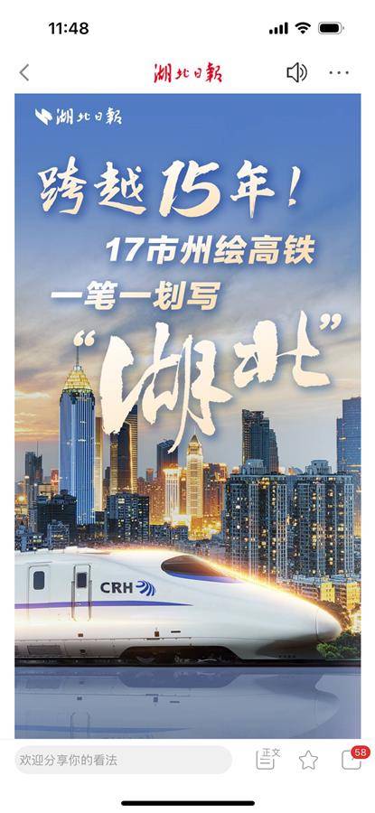 从2009年武广高铁开通运营,到2024年荆荆高铁开通运营,正好是15年。我们决定,围绕“15年”和“湖北”这两个关键词谋划选题。