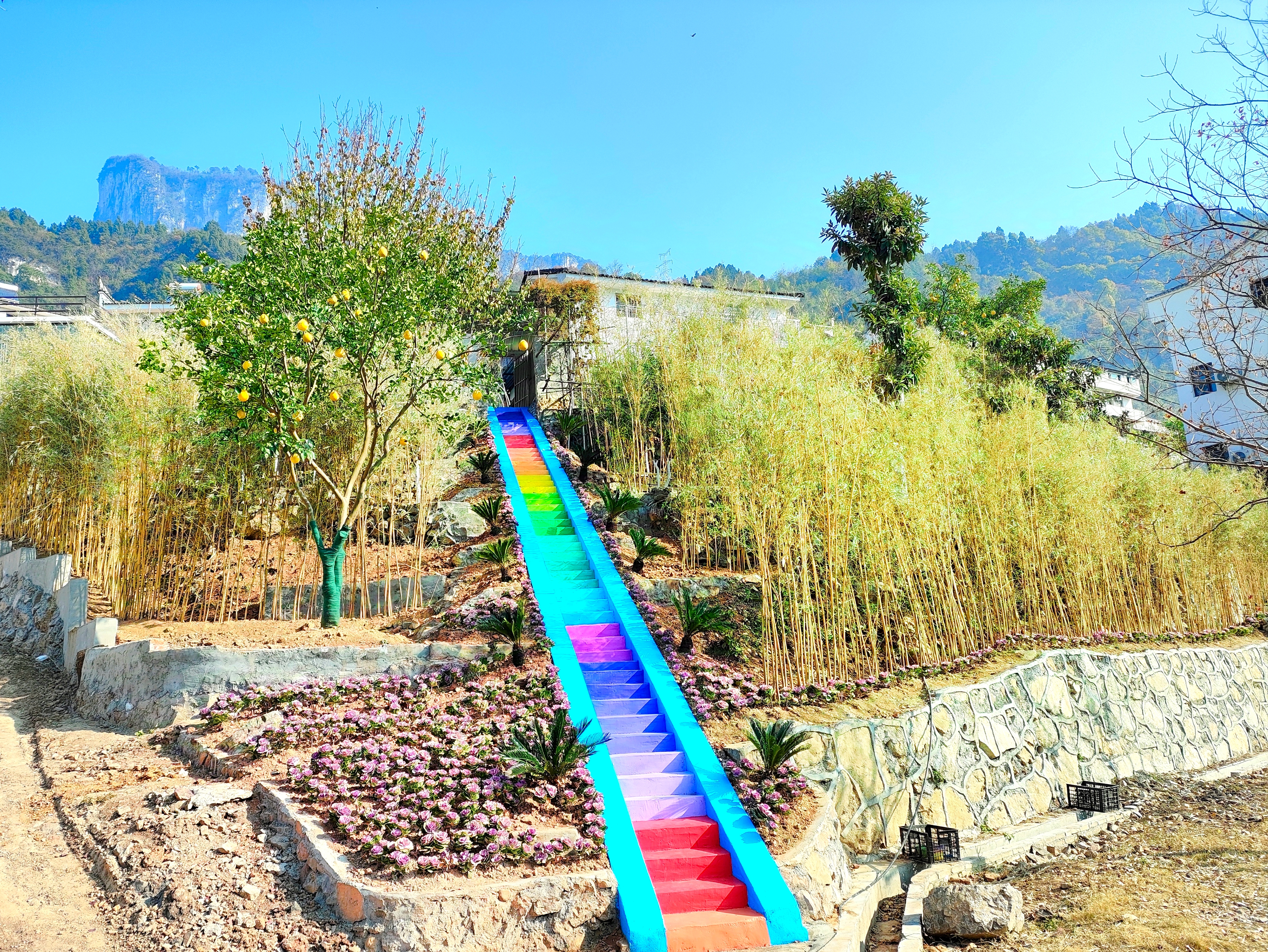 “整条线路完成立面改造258栋共计56720平方米,窗花安装2600多平方米,栽种黄金竹2600株、紫甘蓝1500株,红叶石楠球、红花继木、乌桕树、铁树、紫薇等300余株,石头彩绘500平方米,通过统一风格、优化色彩,让三峡专用公路及G348成为一条集自然美景、人文历史与现代文明于一体的综合性旅游线路。”乐天溪镇农业农村服务中心林业股股长田静波说道。
