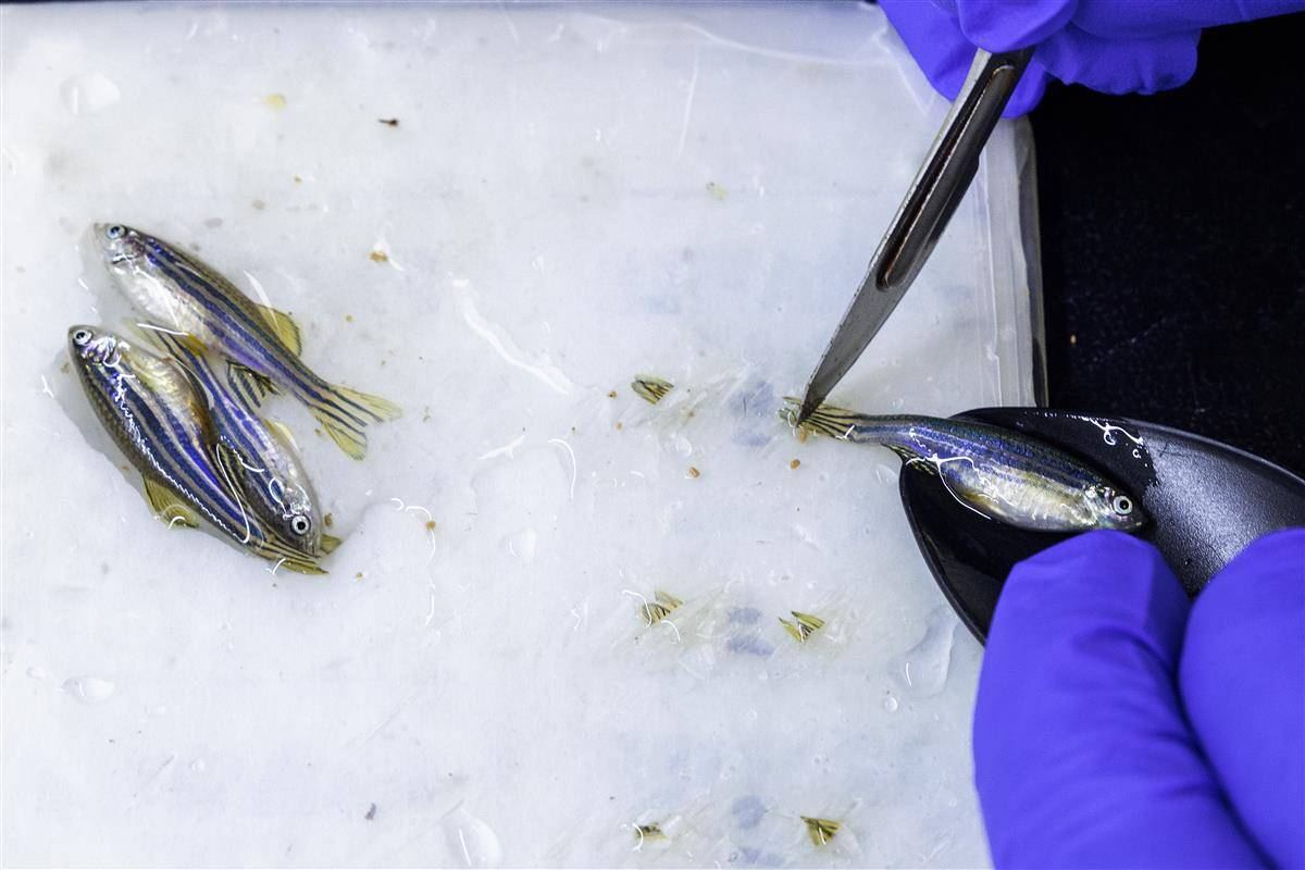 2024年7月29日,在水生所国家斑马鱼资源中心实验室,科研人员切下麻醉后的斑马鱼尾鳍,开展分子生物学研究以进行亲子鉴定。