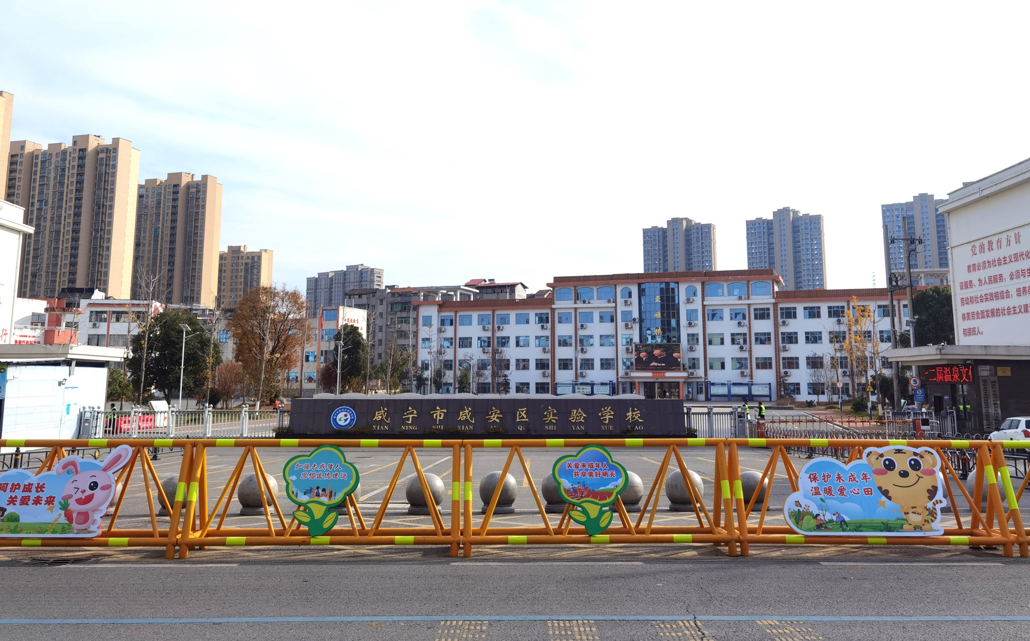 在实施安装过程中,该局以咸宁市咸安区实验学校为试点,并与校方加强沟通,确保安装工作得到校方的理解和支持,确保不影响学校正常教学秩序和周边居民的日常生活。经过专业施工队的快速有序地施工,于11月上旬全部完成咸宁市咸安区实验学校学生进出口通道、车行道及停车场的护栏安装工作,共计安装护栏26片,合计78米,安装“拒马防撞护栏的14片,合计42米。同时,咸宁市咸安区实验学校在护栏上安装形式多样的卡通宣传标语。