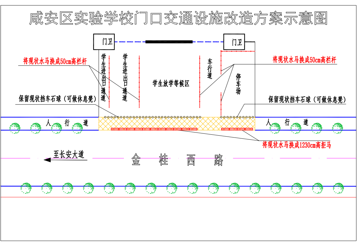 为进一步加强校园周边环境安全管理和学生安全保障工作,10月下旬,咸安区城管执法局联合教育、交警部门多次深入城区多个学校实地调研、勘察,完成了学校周边环境的安全评估,制定了学校周边场地的交通设施改造及“拒马防撞护栏”的安装方案。