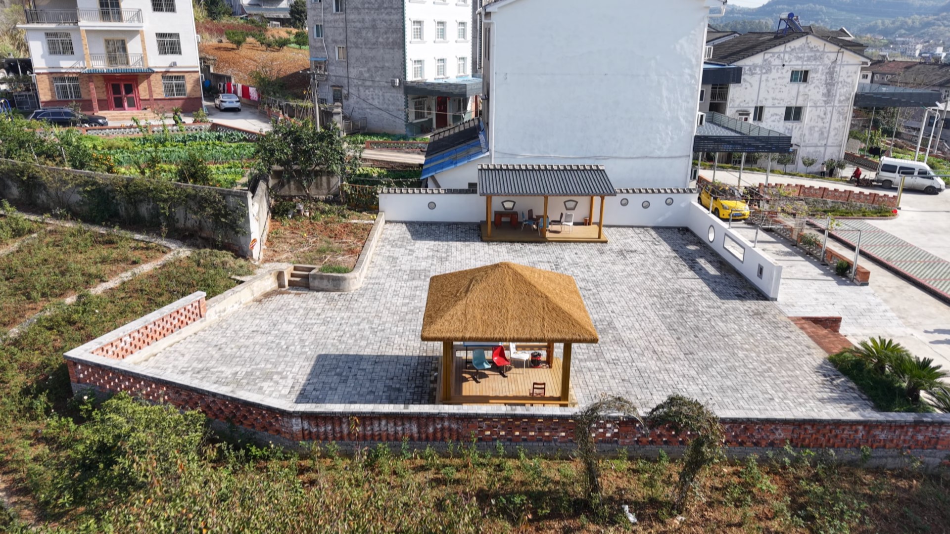 今年10月,鄢家河村将原本的撂荒地改造成罗家榜群众文化广场,铺装彩色地坪漆,增设便民座椅与太阳能路灯,为居民休闲娱乐提供了新场所。