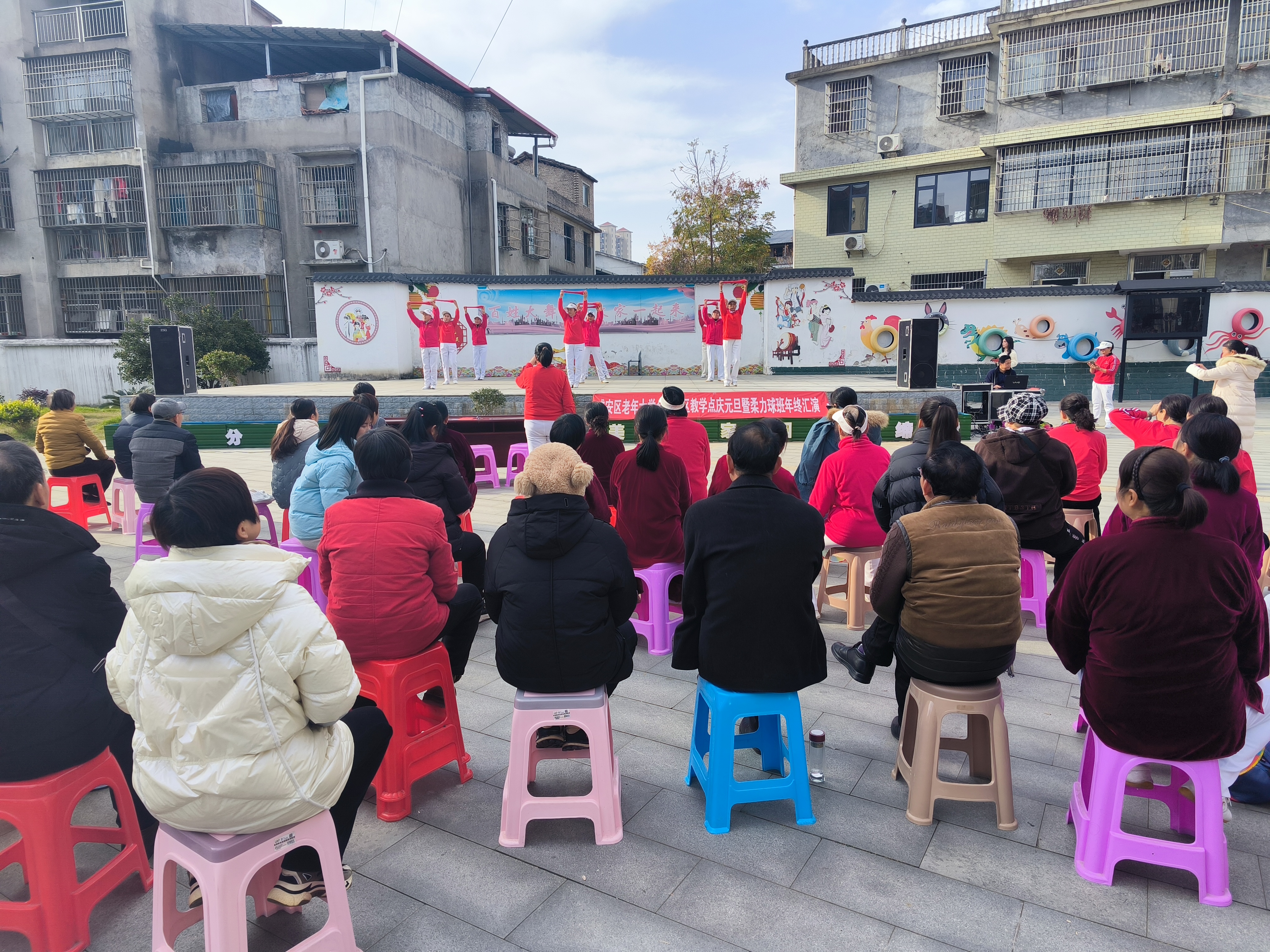 湖北日报客户端讯(通讯员李卫东、李艳)12月17日,区老年大学金叶社区教学点开展庆元旦暨柔力球班年终汇演。伴随着欢快的节奏,柔力球班的学员们登上舞台,挥动球拍,让小球随着舞步在空中舞动,先后上演了《五星红旗》《阳光年华》《一路生花》《点赞新时代》等节目,让观众大饱眼福。