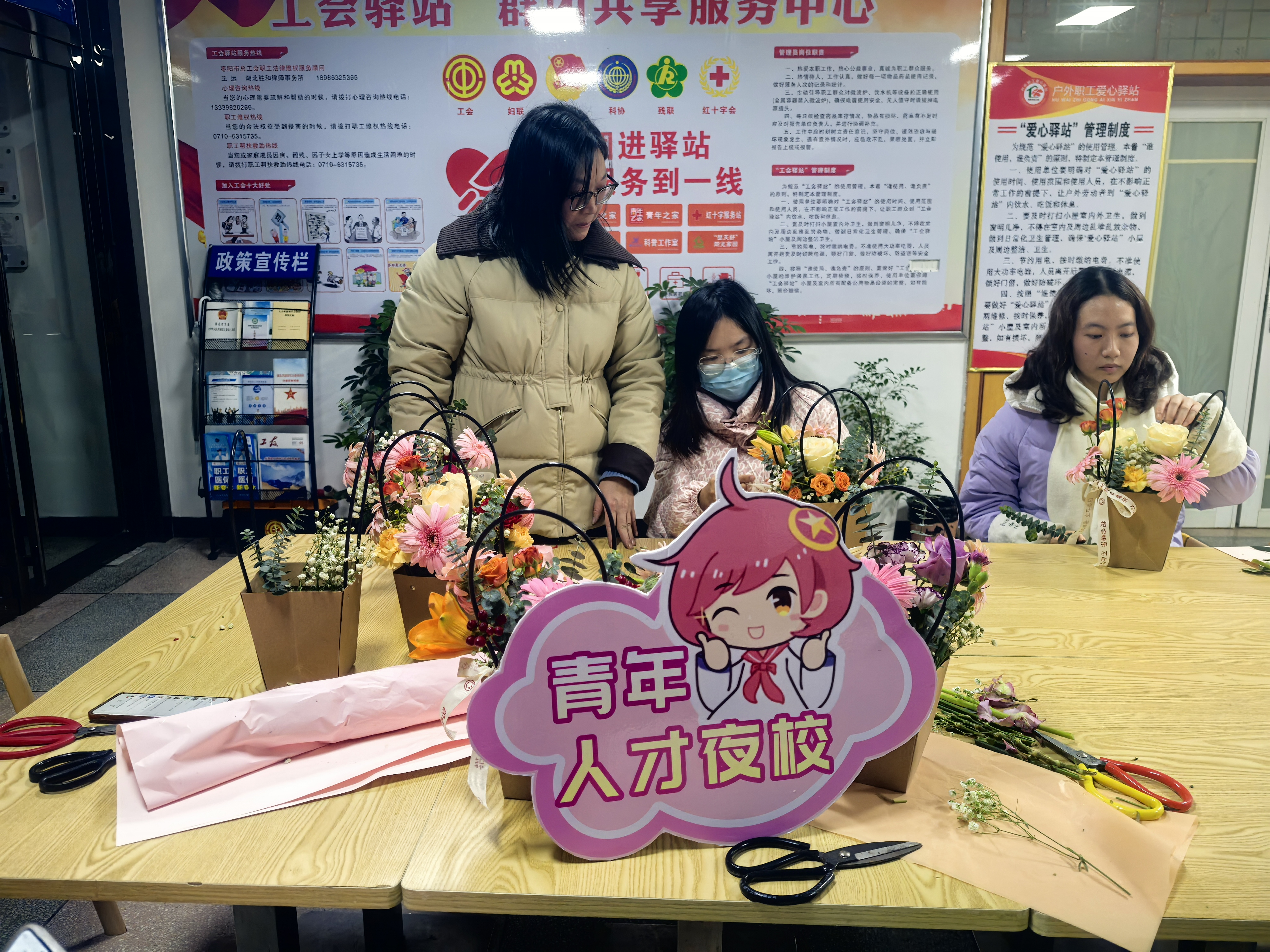 湖北日报客户端讯(通讯员周文茜)12月17日晚,共青团枣阳市委在清泉社区工会户外职工爱心驿站成功举办了“青年夜校 艺术插花体验课”。