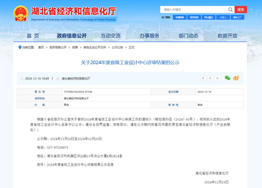 湖北日报客户端讯(通讯员余琪琳)近日,湖北省经济和信息化厅发布了《关于2024年度省级工业设计中心评审结果的公示》,我县湖北辉创重型工程有限公司工业设计中心、湖北鸿路钢结构有限公司工业设计中心、湖北瑞力源环保科技有限公司工业设计中心成功入选,至此,我县共培育省级工业设计中心5家。